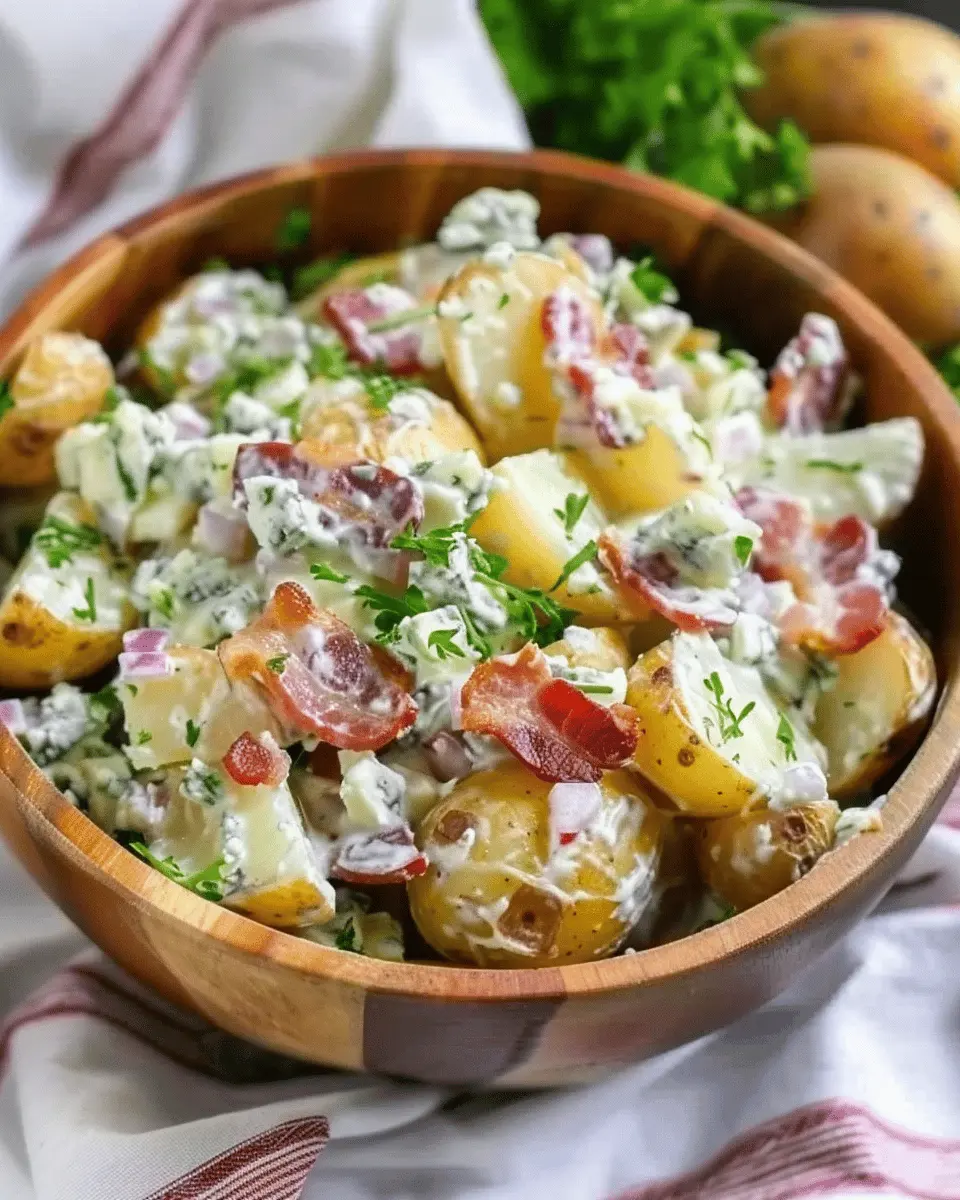 In conclusion, whether you’re hosting a summer barbecue or looking for a robust side for your next dinner, this bacon blue cheese potato salad is a fantastic choice that is sure to impress. Enjoy your culinary creation, and don’t forget to share it with your friends!