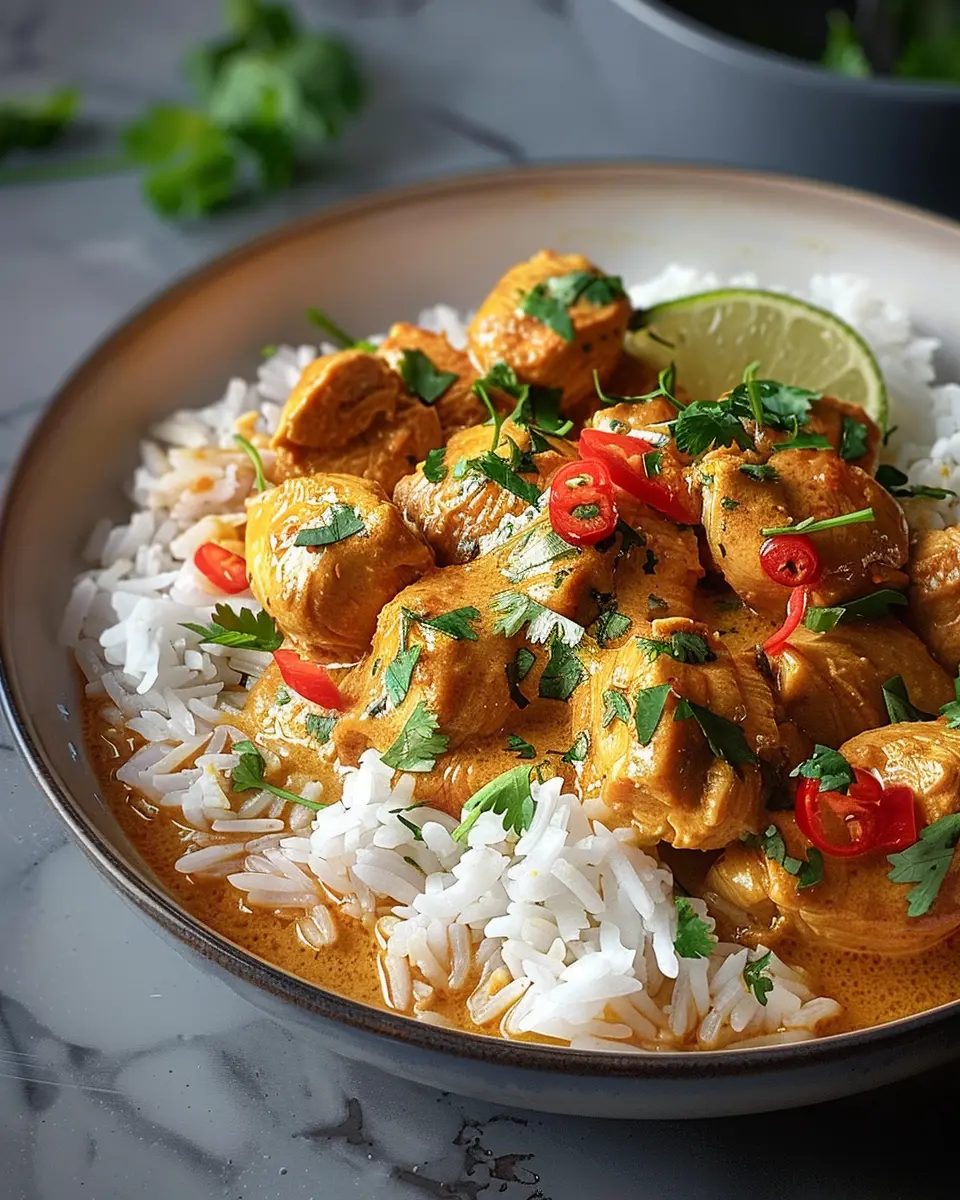 Jasmine Rice: The subtle sweetness of jasmine rice complements the rich coconut sauce beautifully. It’s fragrant and fluffy — a spoonful of heaven!