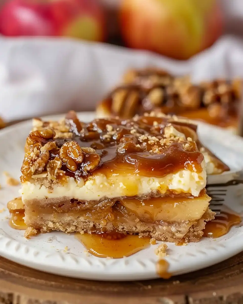 Keywords: Caramel Apple Cheesecake Bars, Fall Dessert, Indulgent Treat