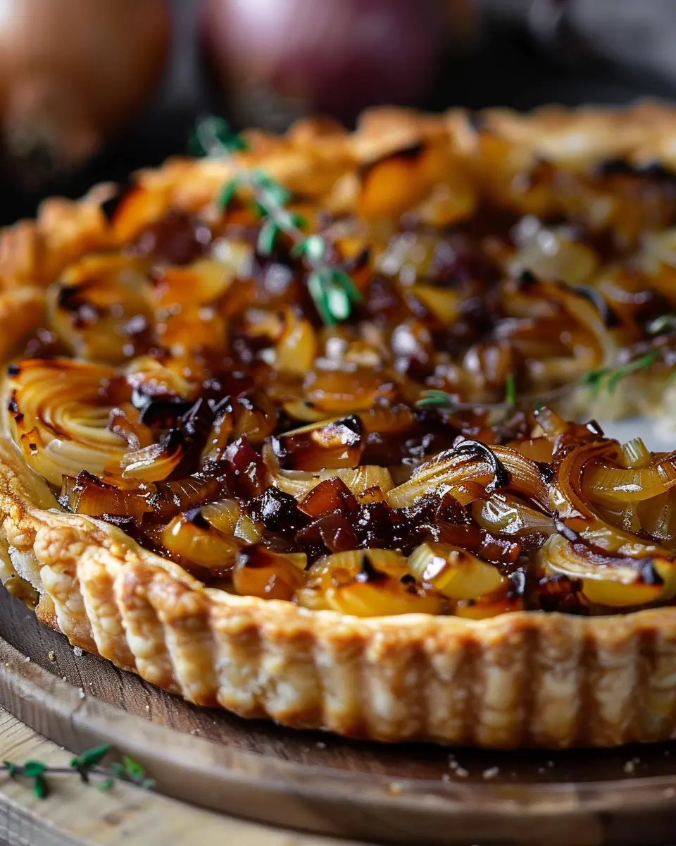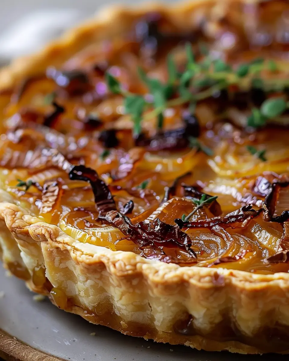 PrintCaramelized Onion Tart: Indulgent Flavors with Turkey Bacon Delight