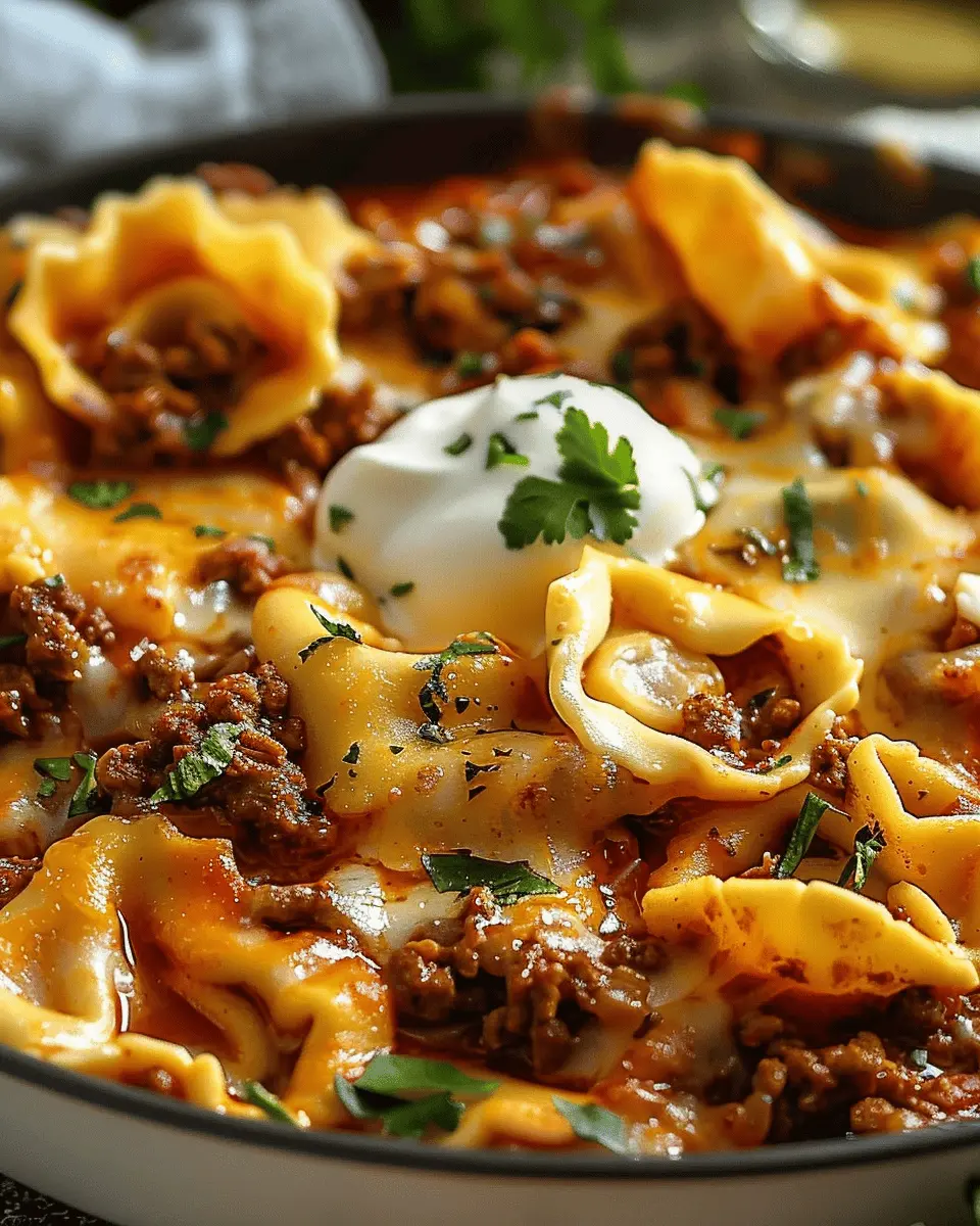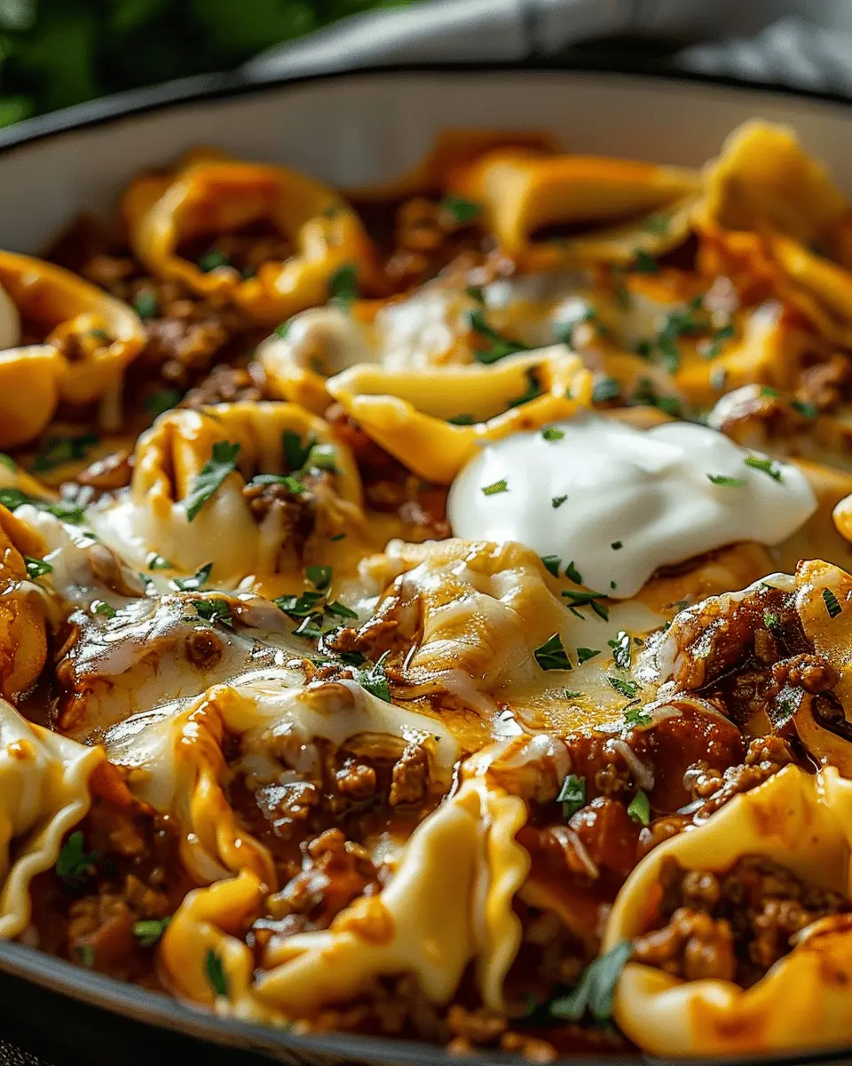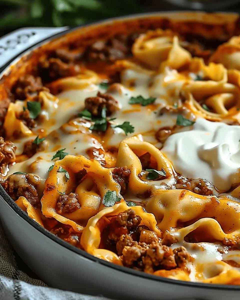 PrintCheesy Beef Enchiladas Tortellini: Easy Comfort Food Delight