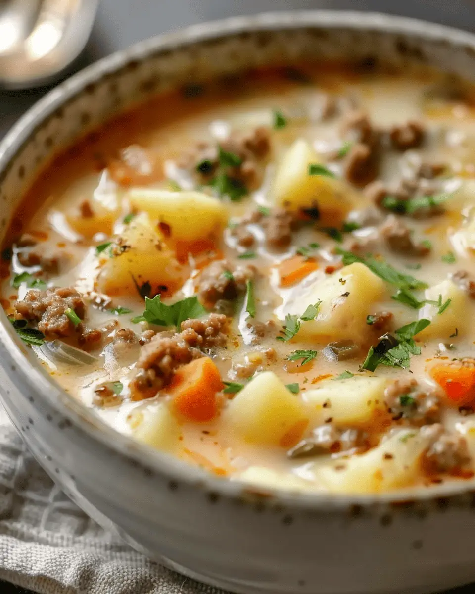 Cheesy Hamburger Potato Soup: A Cozy, Indulgent Comfort Dish