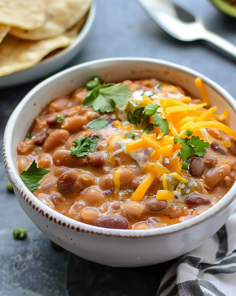 Once the cheese is fully melted, your Cheesy Pinto Beans are ready to serve! Ladle them into bowls and get creative with toppings. A sprinkle of cilantro, a few avocado slices, or a drizzle of lime juice can add that extra zing.