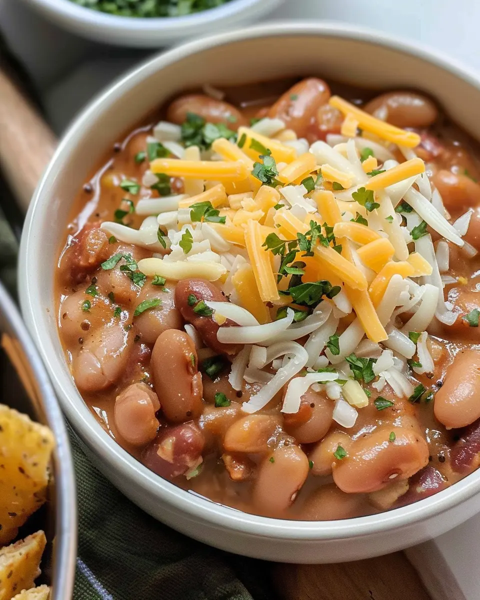 A delightful and easy recipe for cheesy pinto beans with turkey bacon, perfect for a comforting meal.