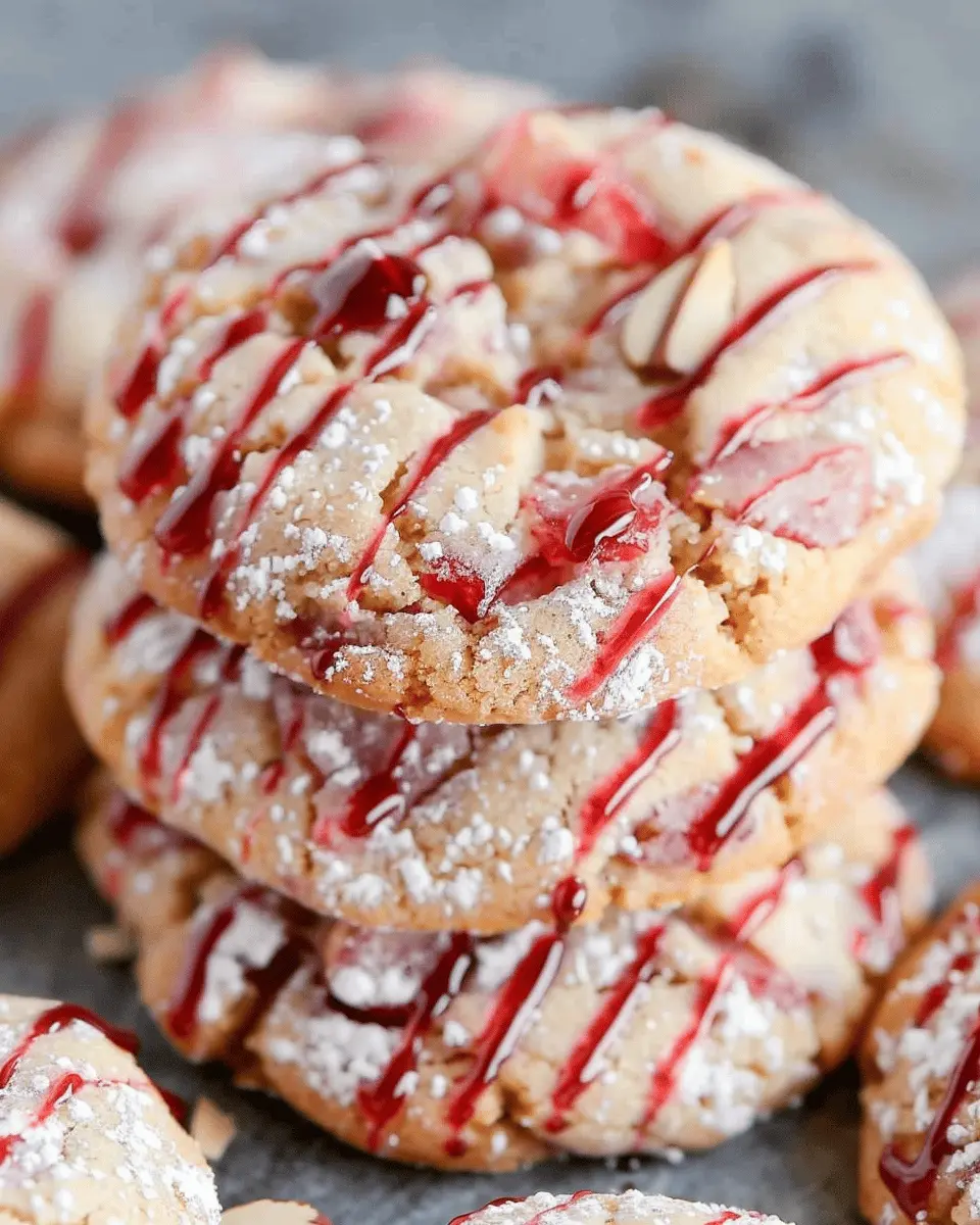 Planning a get-together? Impress your guests with elegant presentation ideas! Arrange the cherry almond cookies on a rustic wooden platter, garnished with fresh cherries and a sprinkle of powdered sugar for an eye-catching display. You can also stack them in a glass jar tied with a ribbon for a charming, homemade touch.