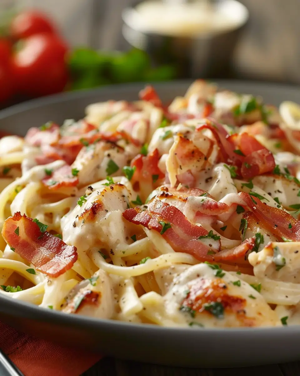 If you’re looking to lighten up your Chicken Bacon Ranch Pasta, there are plenty of delicious substitutions you can make without sacrificing flavor. Consider swapping out regular pasta for whole wheat or chickpea pasta, which packs more fiber and protein. Additionally, using low-fat Greek yogurt instead of heavy cream in your sauce can cut calories while adding a creamy texture. You can also replace traditional turkey bacon with turkey sausage or grilled chicken for a leaner protein option.