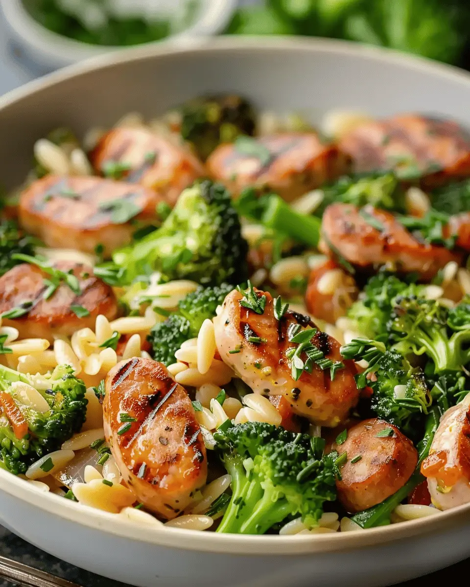 Don’t have the exact ingredients? No worries! You can easily swap the chicken sausage for turkey bacon or even chicken ham for a delightful variation. If you’re short on broccoli, try using spinach or asparagus as a tasty alternative. And for those looking for a gluten-free option, quinoa works well instead of orzo. For step-by-step cooking techniques and additional variations, check out this guide on the Food Network. Remember, cooking should be fun and flexible, so feel free to make this dish your own!