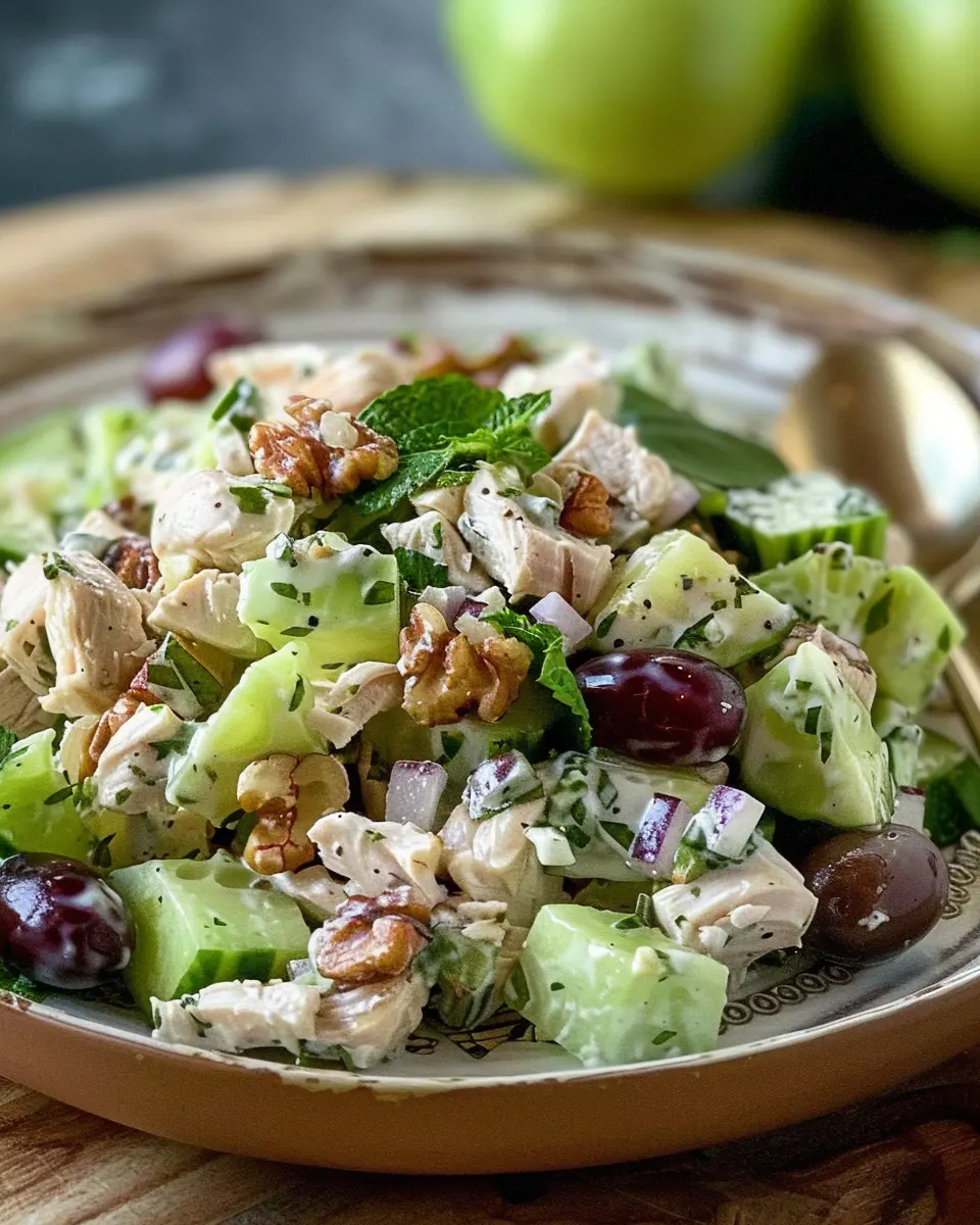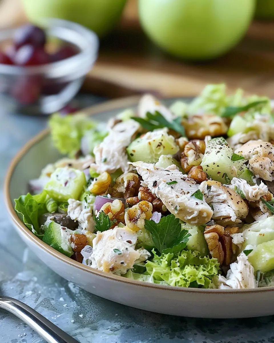Finally, it’s time to serve your masterpiece. You can present the Chicken Waldorf Salad on a bed of mixed greens for a more dramatic presentation or simply scoop it into bowls. Consider garnishing with a few extra nuts or some thin apple slices for that finishing touch.