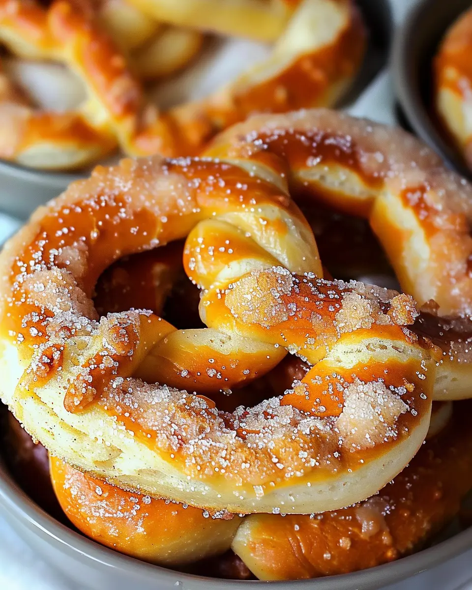 These Cinnamon Sugar Soft Pretzels are a delightful treat that combines the chewiness of soft pretzels with a sweet cinnamon sugar coating.