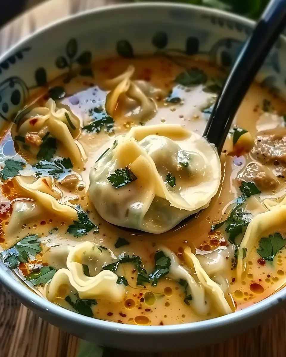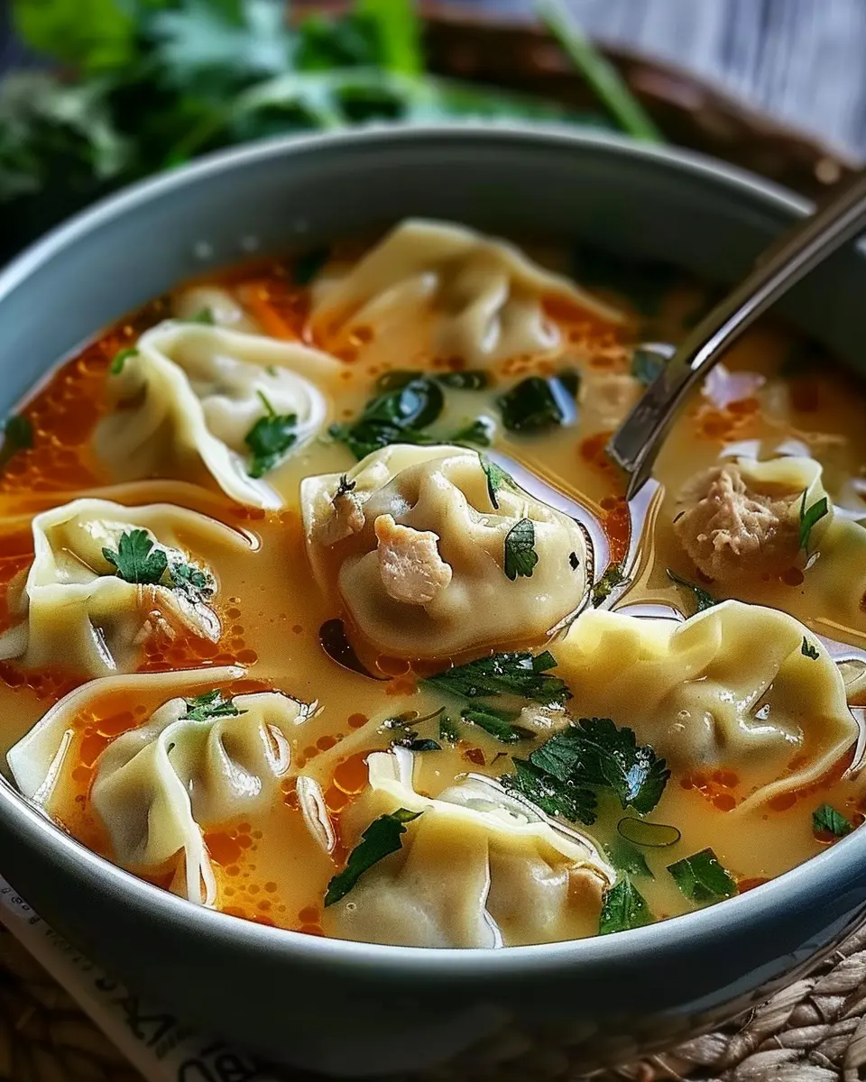 Enjoy a warm and cozy bowl of Comforting Thai Potsticker Soup, perfect for chilly nights. This easy recipe features flavorful dumplings in a delicious broth that is sure to please.