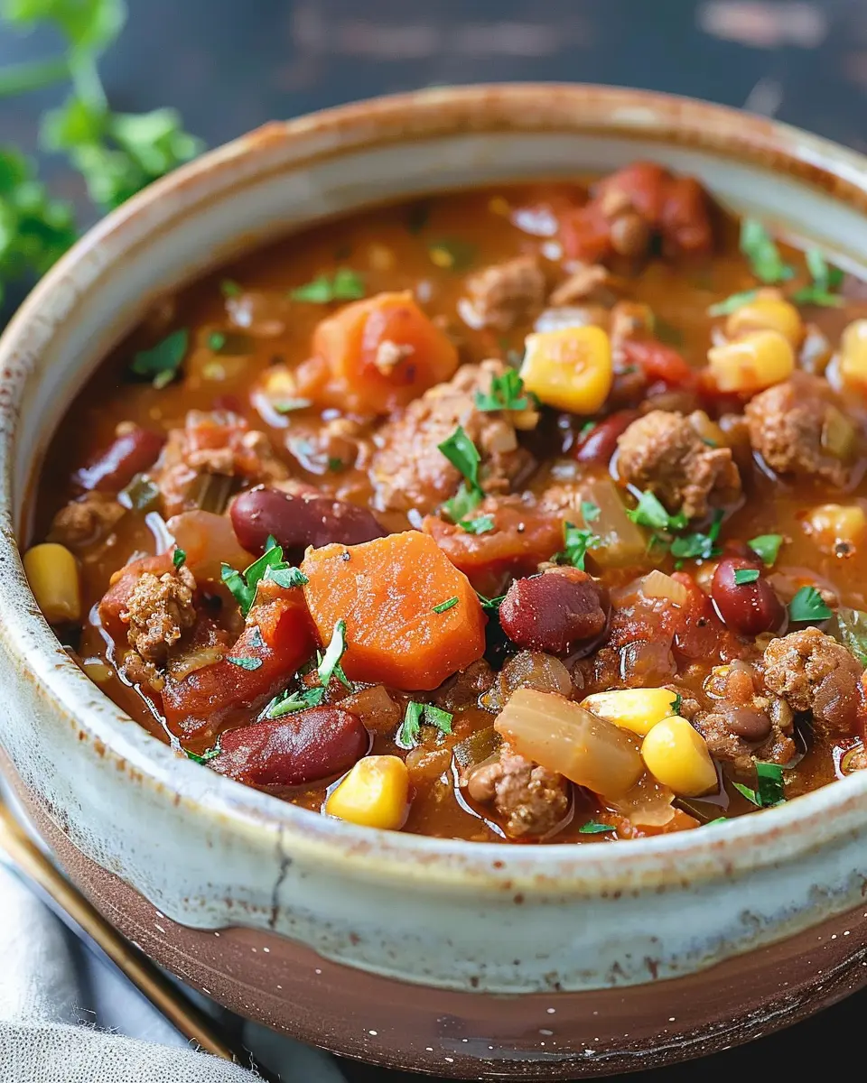 One of the stars of this stew is its protein content, primarily from the Turkey Bacon, Chicken Ham, and beans. You can expect each serving to provide about 20-30 grams of protein, contributing to muscle maintenance and overall health.