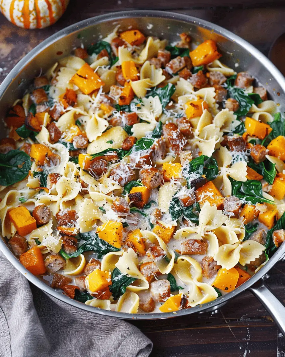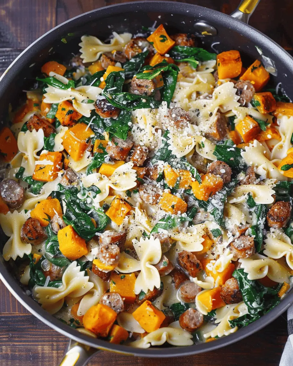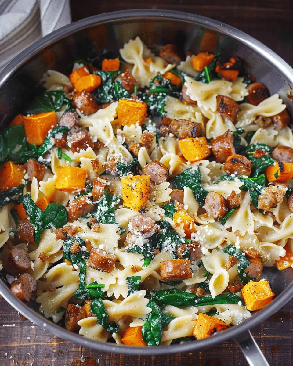Creamy Butternut Squash Pasta with Sausage and Spinach Delight