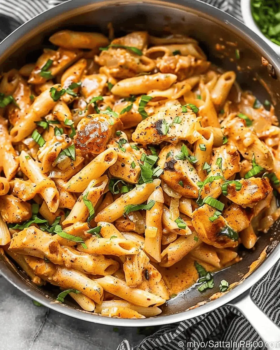 Cooking up this delicious dish requires about 25–30 minutes. You’ll be sautéing the chicken, mixing the creamy sauce, and boiling your pasta all in one go. Don’t worry—the kitchen will fill with delightful aromas while you concentrate on achieving that perfect blend of spices.