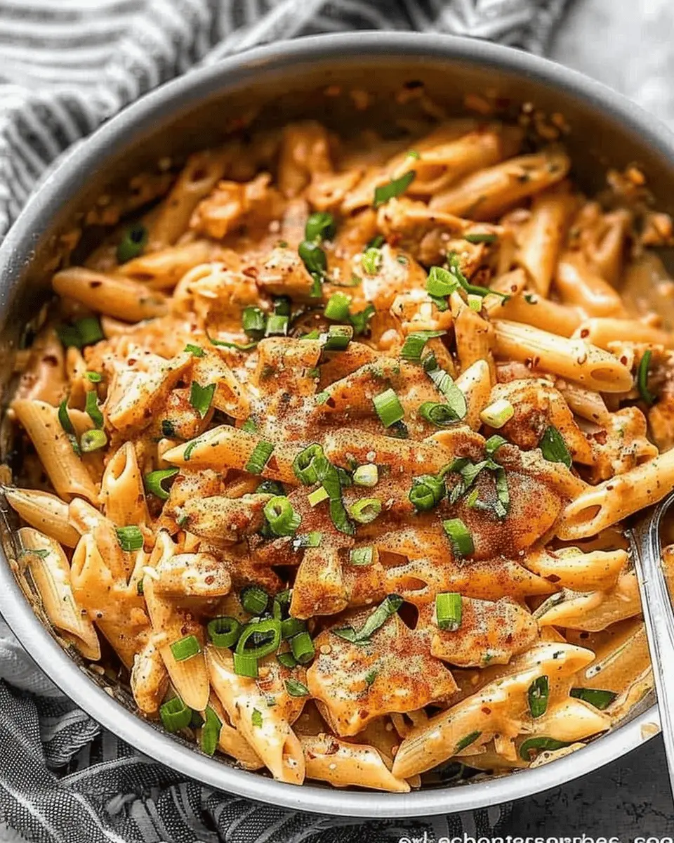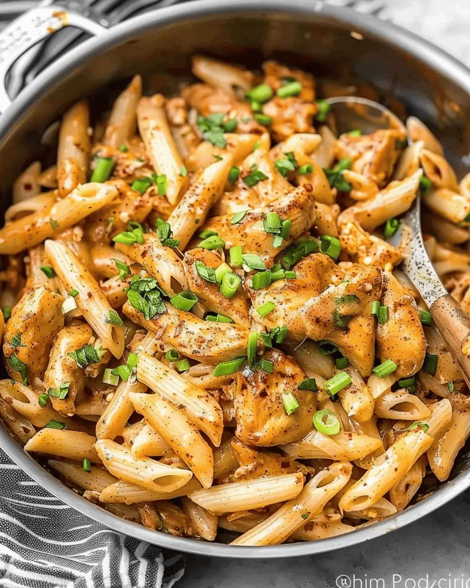 A rich and creamy dish featuring Cajun-spiced chicken served with pasta, perfect for a comforting meal at home.