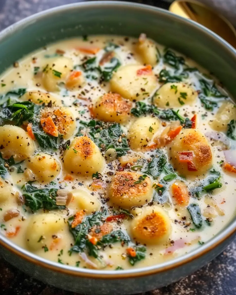 A comforting and hearty creamy vegetarian gnocchi soup that is perfect for chilly days. Packed with veggies and flavorful herbs, this soup is both nourishing and satisfying.