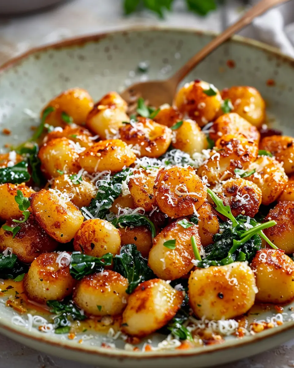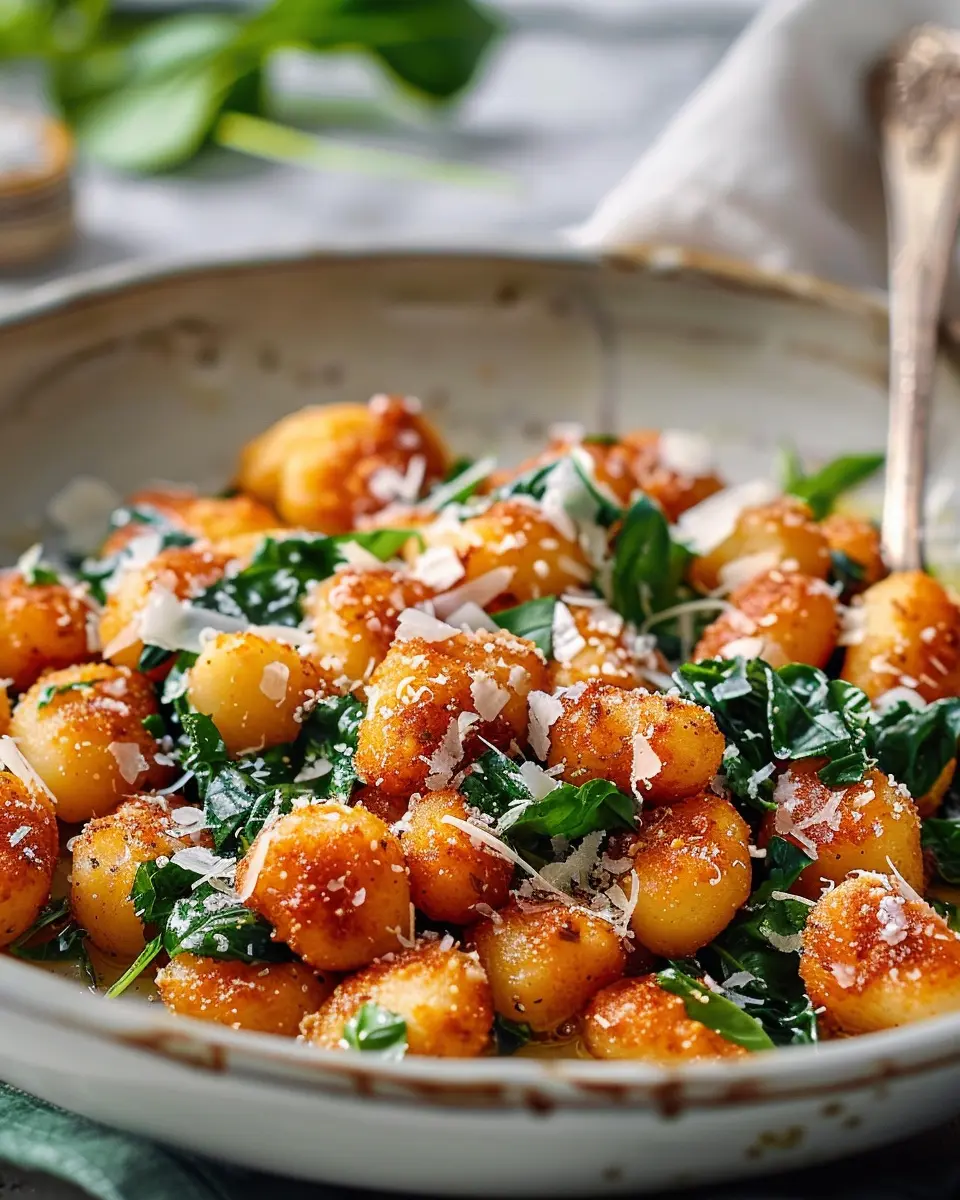 While spinach is a classic pairing with crispy gnocchi, don’t hesitate to experiment with other leafy greens. Try sautéing fresh kale or Swiss chard with garlic for a heartier alternative. Both greens not only introduce different textures but also provide additional nutrients to your dish. Remember, the more greens, the merrier when it comes to health!