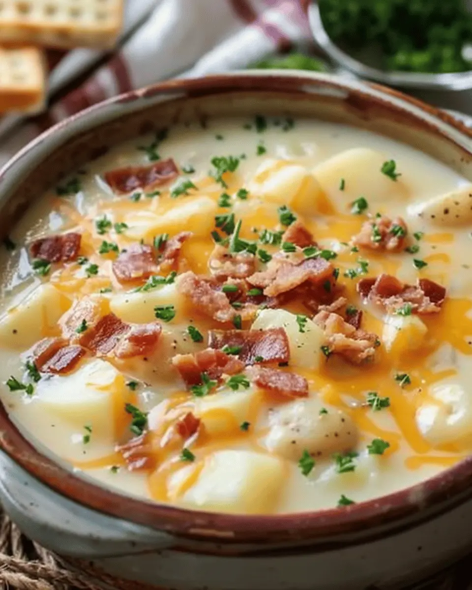 This creamy and indulgent crock pot crack potato soup is perfect for cold nights and satisfying meals.