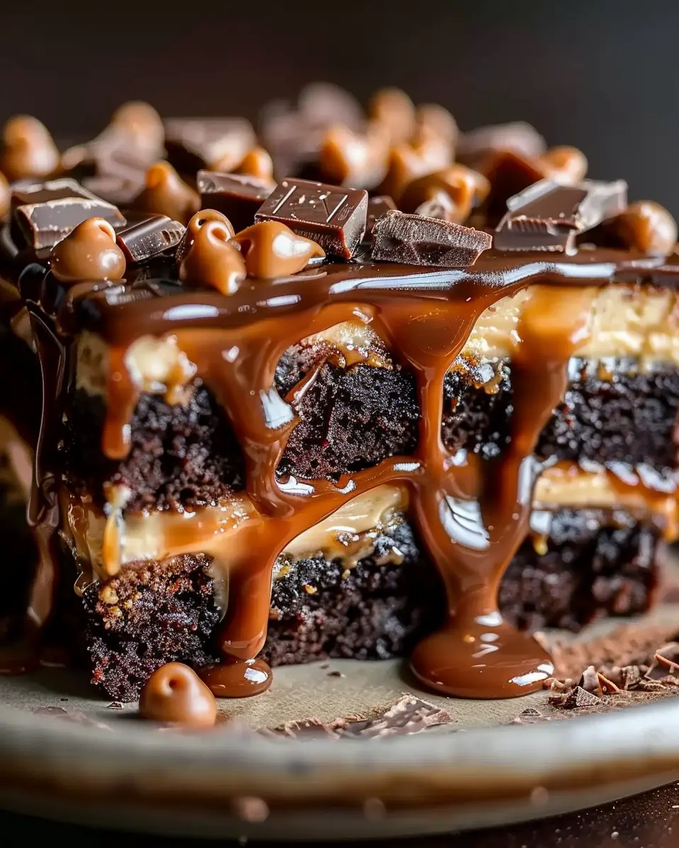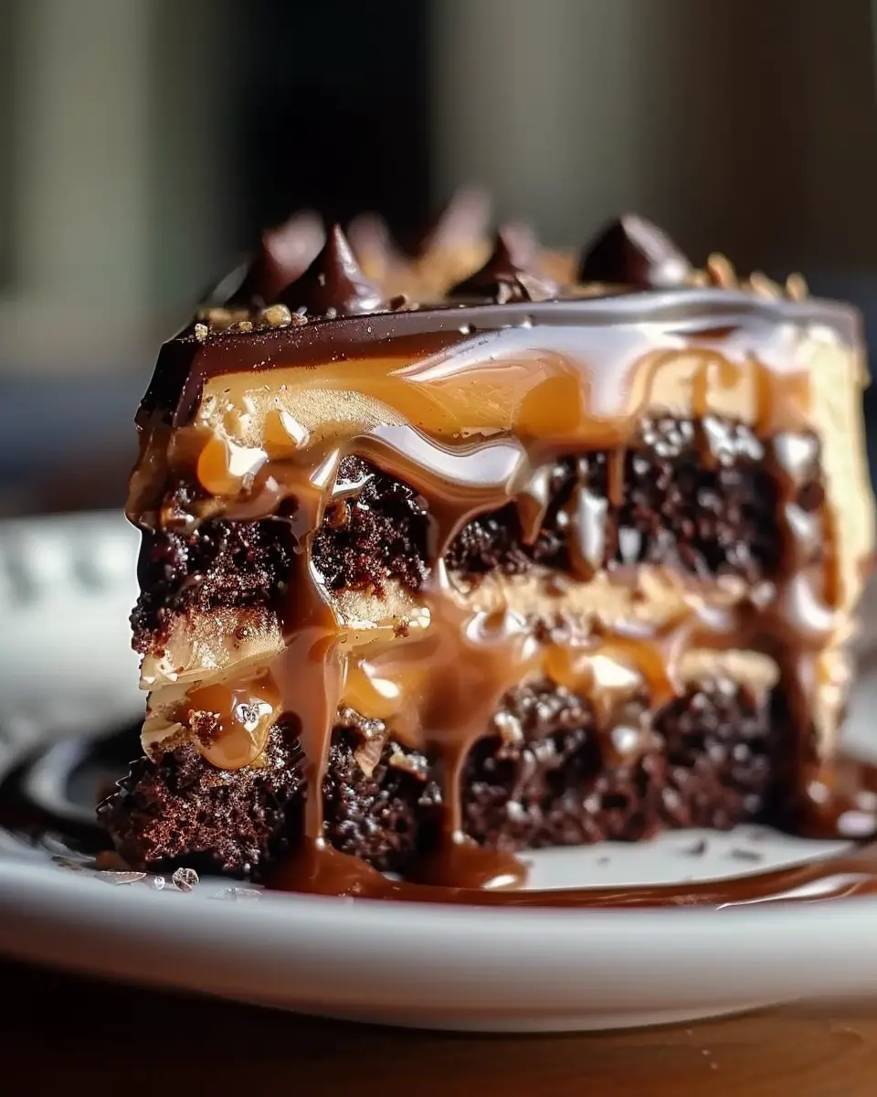 A rich and indulgent chocolate cake layered with caramel and toffee that will satisfy any sweet tooth.