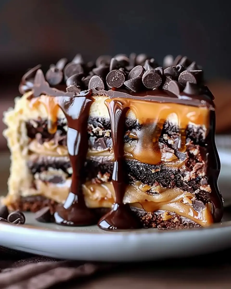 PrintDecadent Chocolate Caramel Toffee Cake: The Ultimate Indulgence