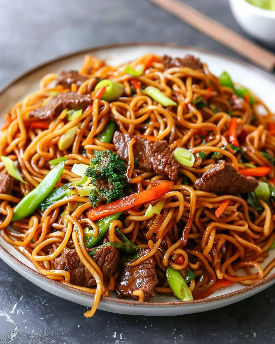 And there you have it—your easy beef lo mein is ready to serve! This colorful, hearty dish is perfect for a weeknight dinner or impressing guests. Enjoy your meal, and don’t forget to share this recipe with friends who might need a quick and delicious fix!