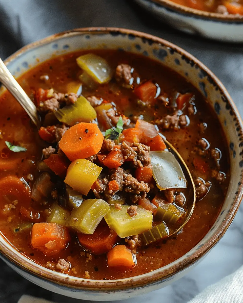 If you’re looking for a vegetarian alternative, it’s surprisingly easy to adapt this recipe. Swap the hamburger for lentils, chickpeas, or even quinoa for protein. You can also enhance the soup’s flavor by using vegetable broth instead of beef stock. Adding mushrooms can give you that hearty texture that meat usually provides. Embrace the versatility of this soup—after all, it’s about making it your own!
