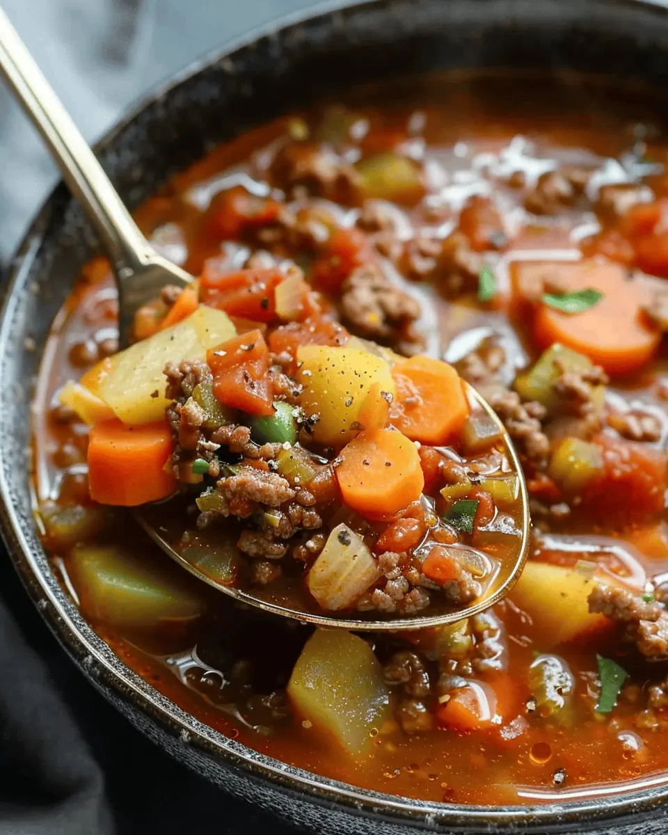 This Easy Hamburger Vegetable Soup is a hearty and comforting dish perfect for any occasion.