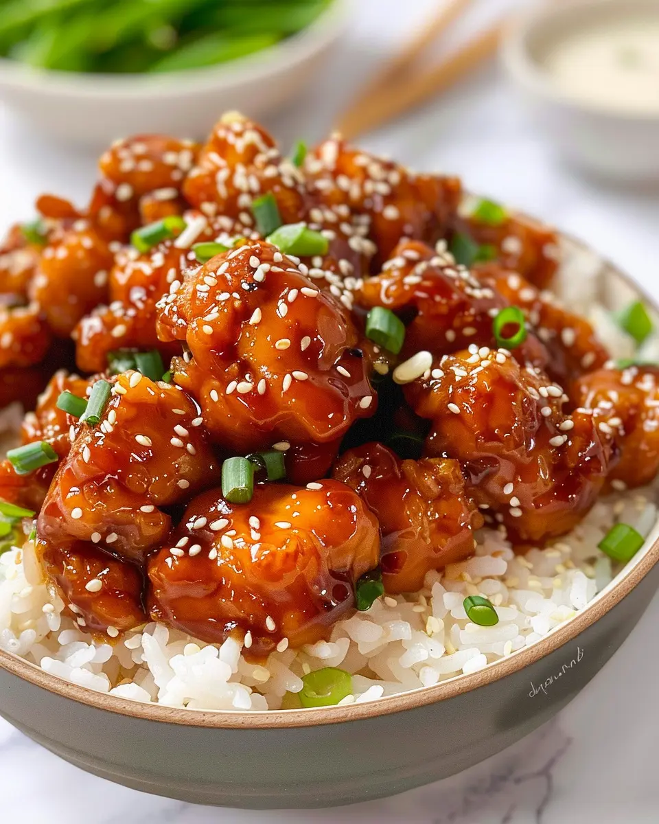 Once your chicken is perfectly crispy, it’s time to bring everything together. In a large mixing bowl, toss the fried chicken with your prepared sauce until every piece is well-coated. This is where the magic happens—every bite is savory, sweet, and gloriously rich in flavor.