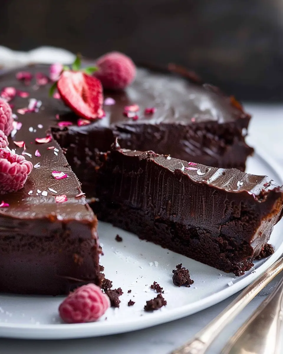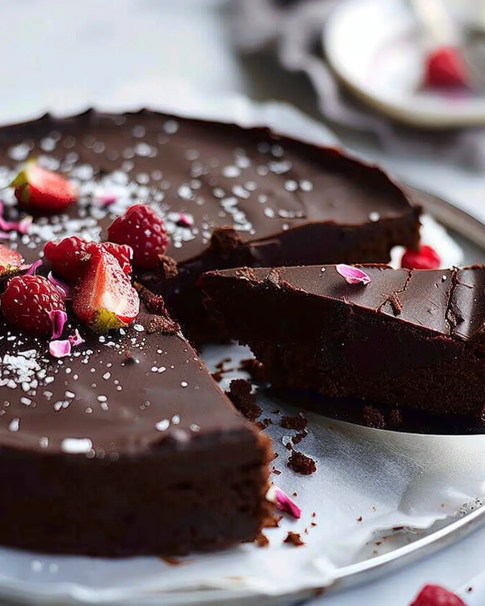 A rich and decadent flourless chocolate truffle cake that is perfect for chocolate lovers.