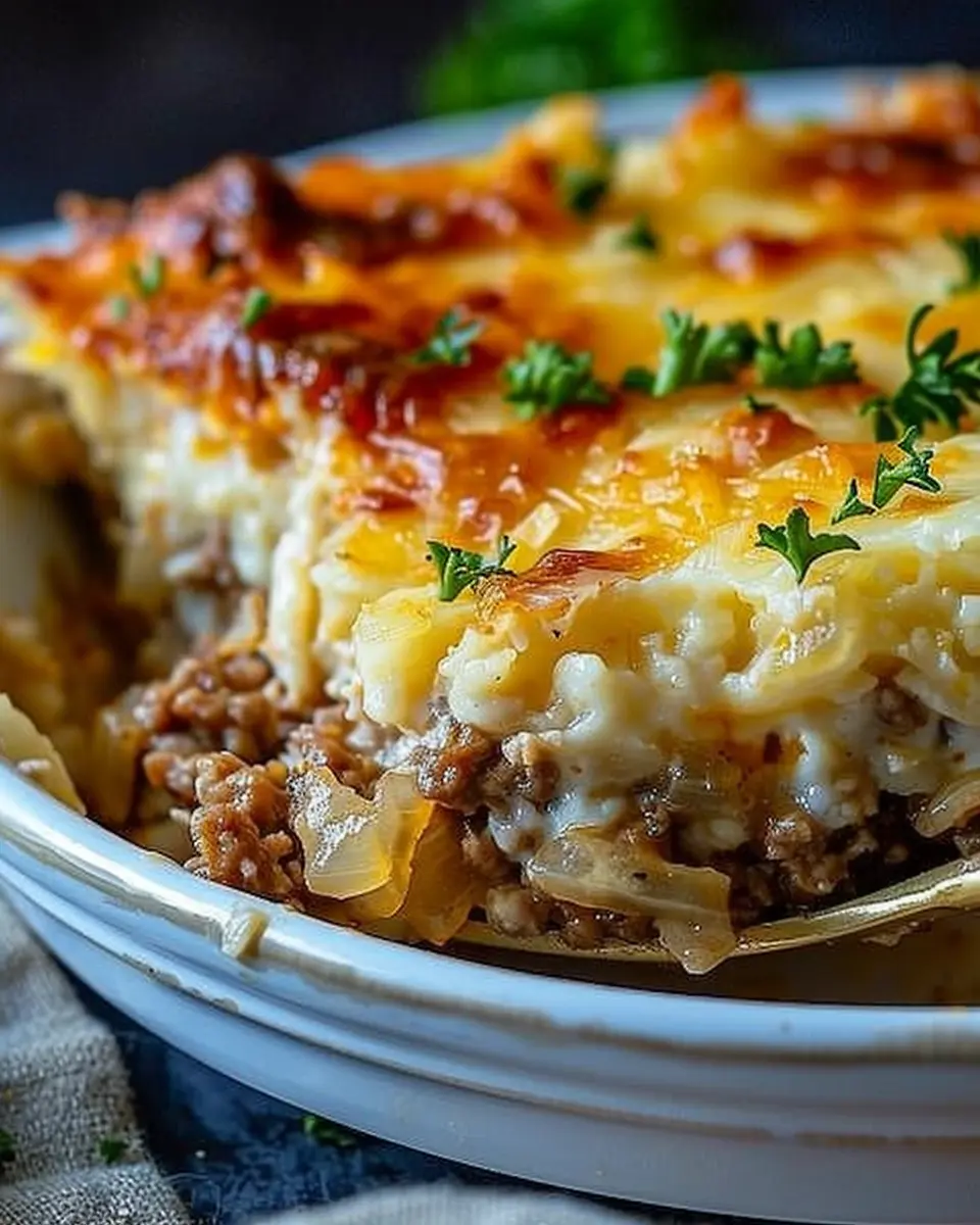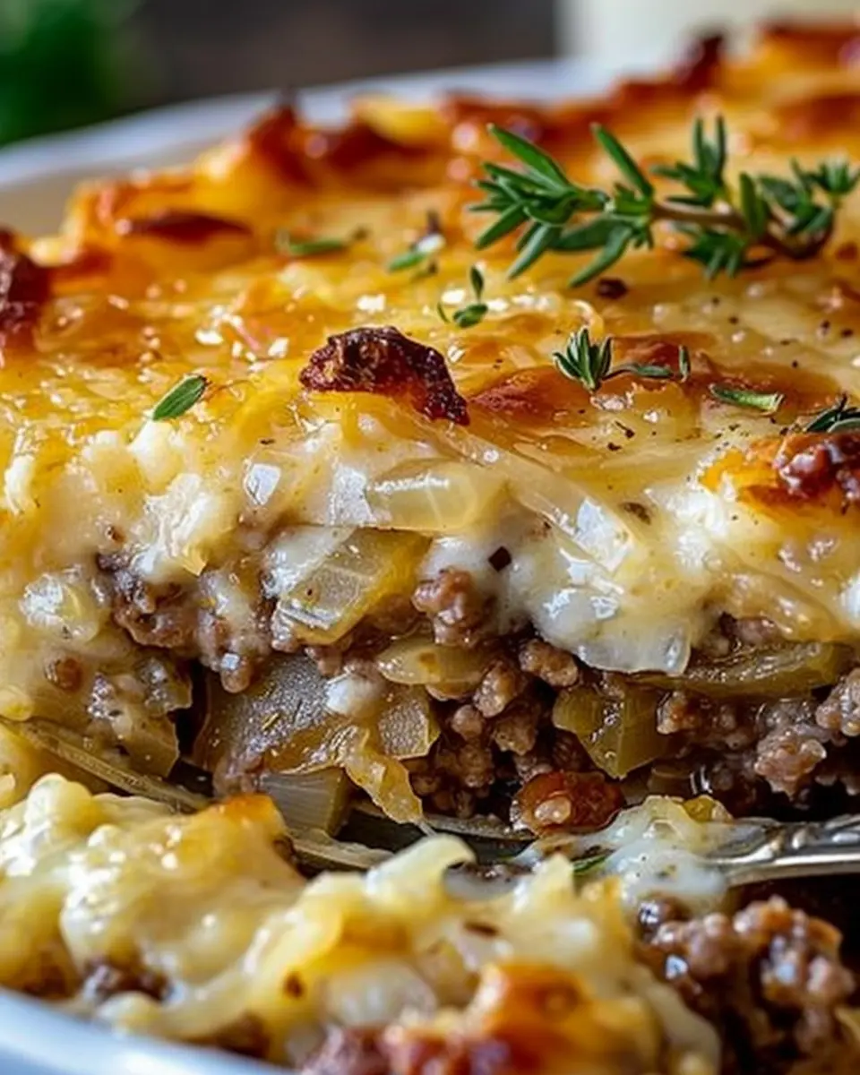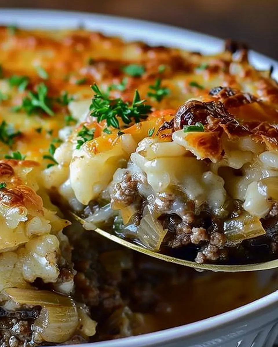 PrintFrench Onion Ground Beef Casserole: Easy and Indulgent Comfort Food