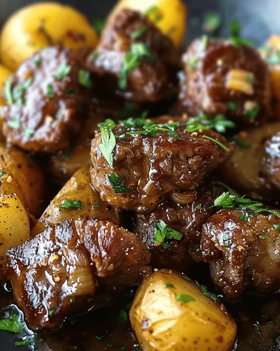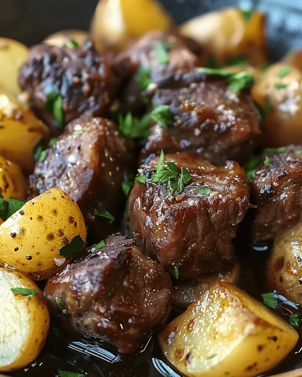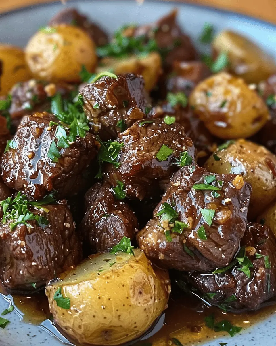 Enjoy these easy and juicy garlic butter beef bites with potatoes for a delightful meal packed with flavor.