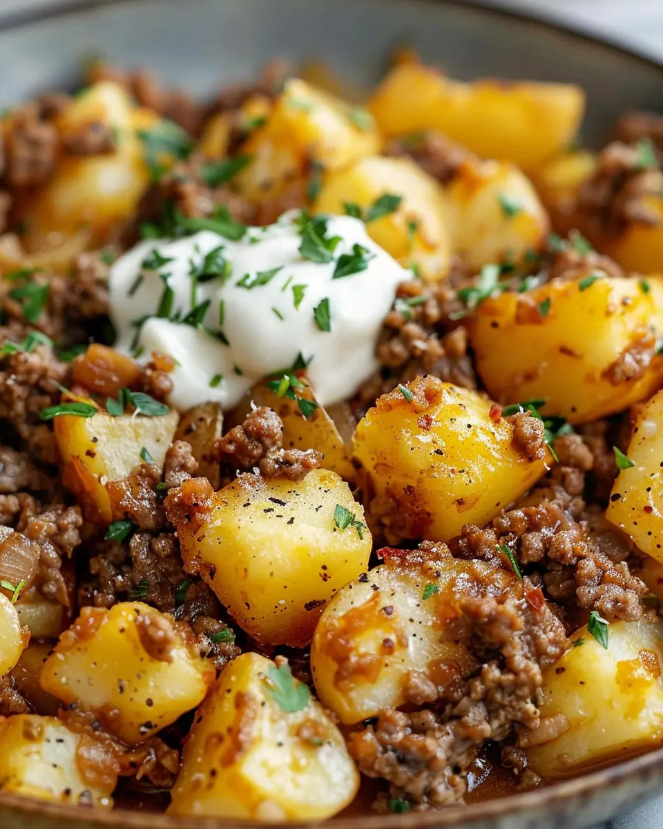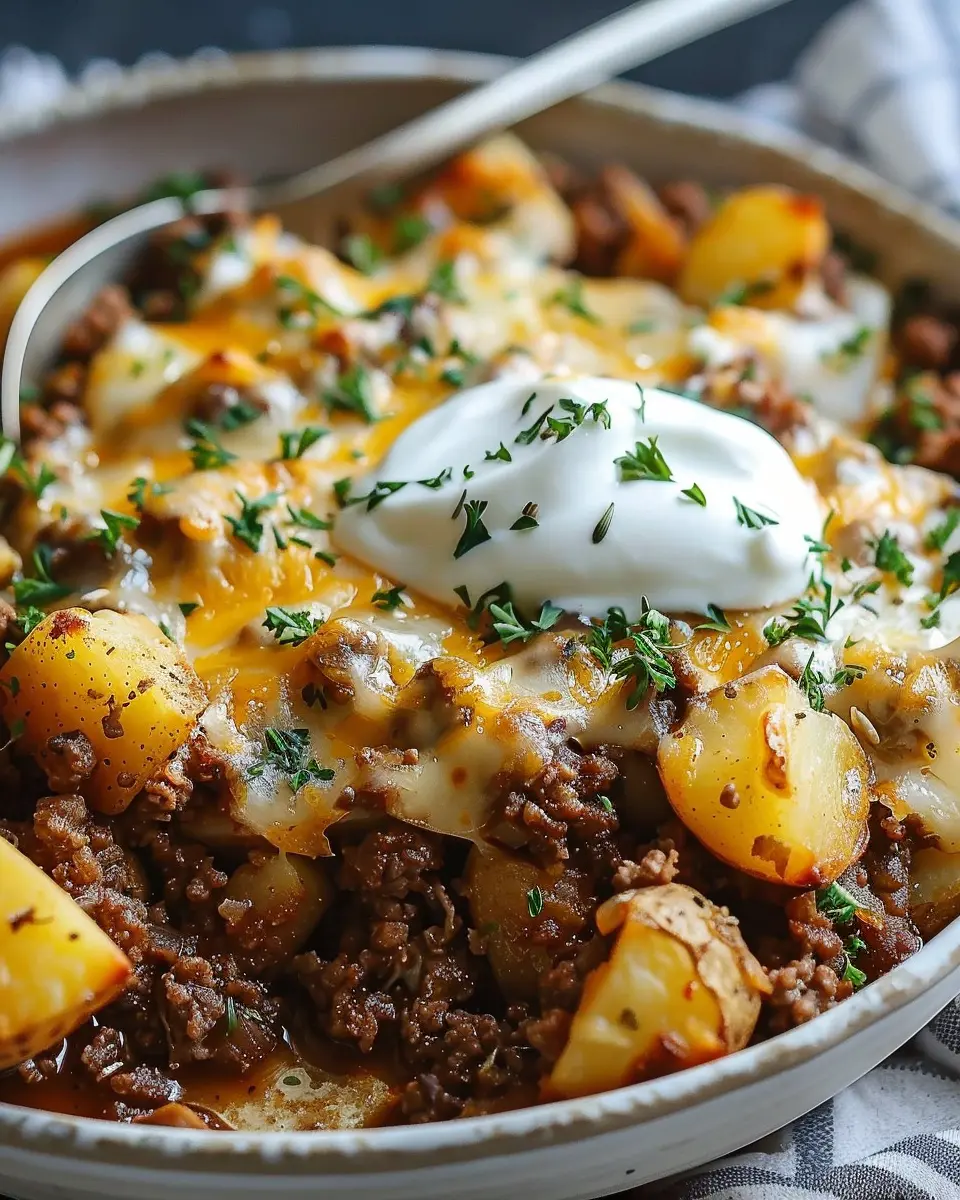 This easy comfort meal is perfect for busy weeknights, combining hearty ground beef with tender potatoes.
