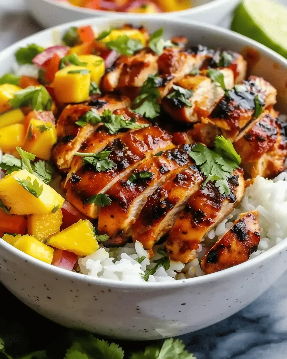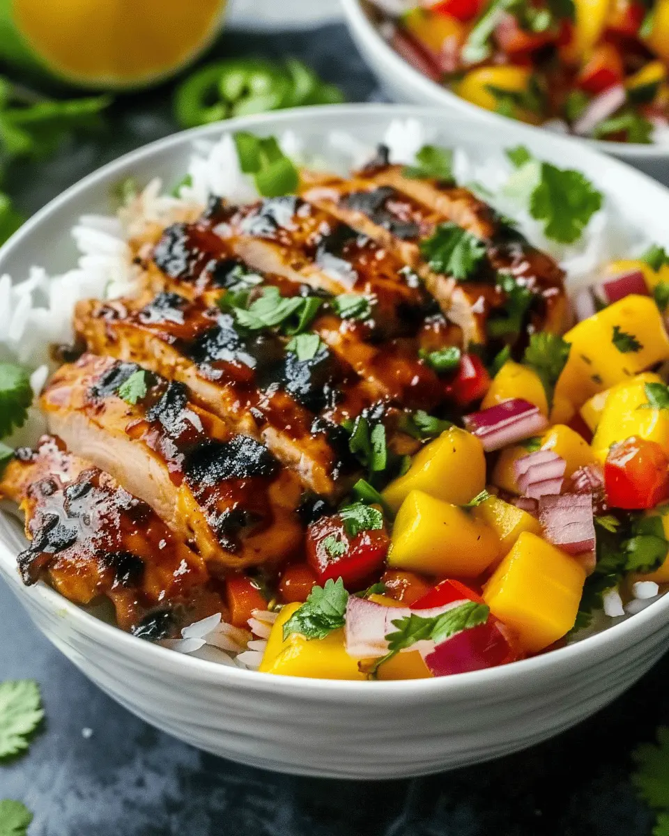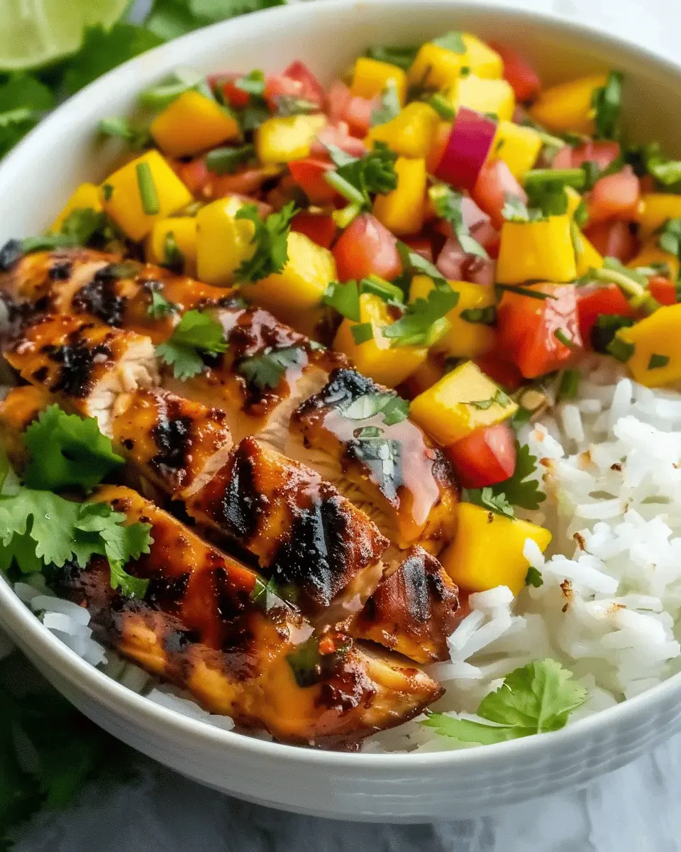 Keywords: Jerk Chicken, Mango Salsa, Coconut Rice, Bowls, Tropical Flavors