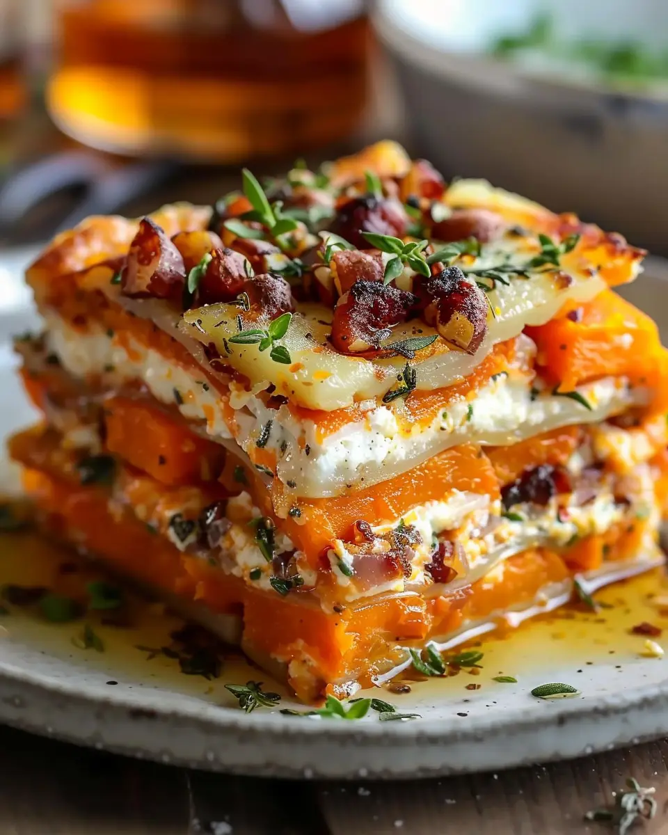 PrintLayered Sweet Potato Butternut Squash Carrot Lasagna Delight