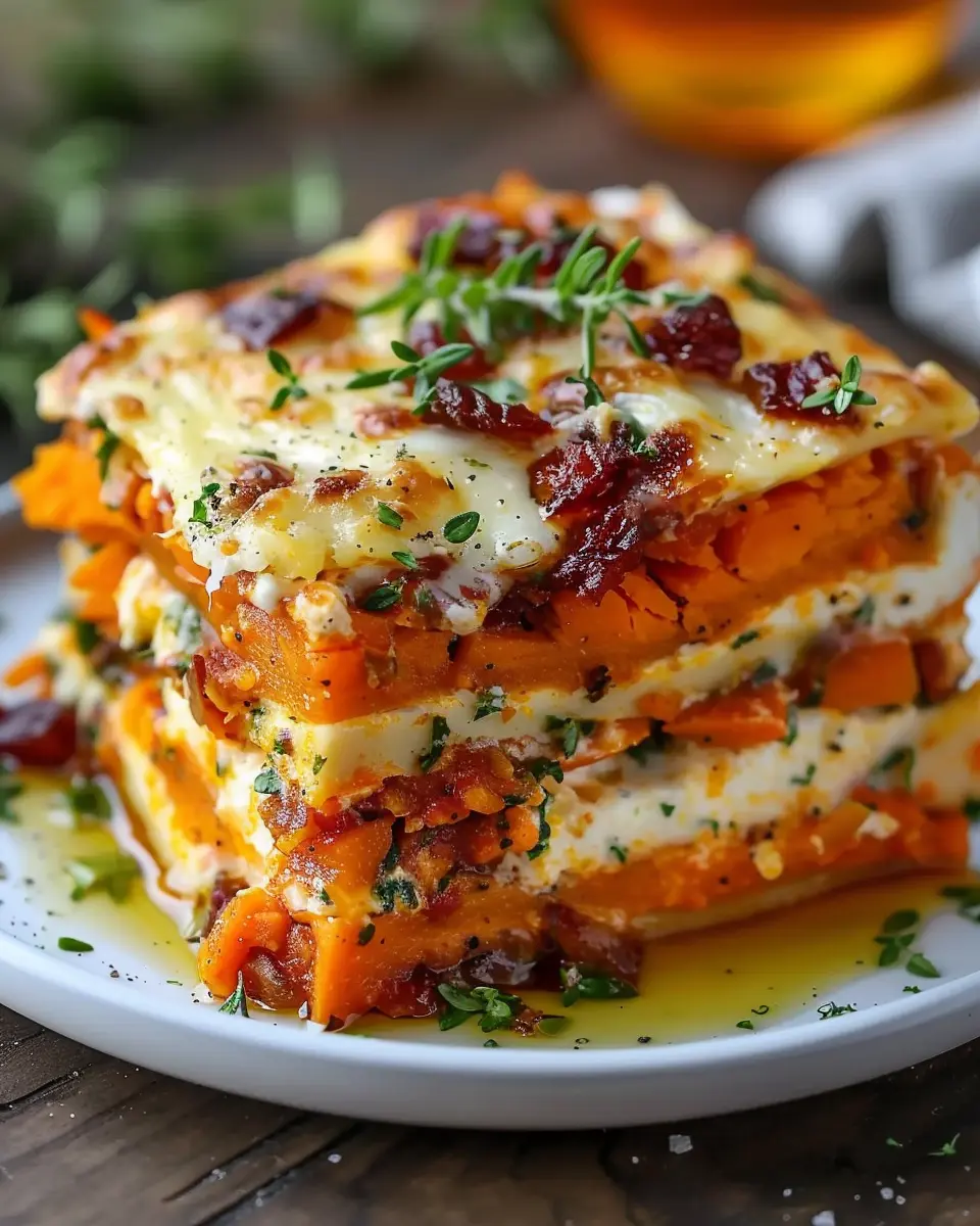 PrintLayered Sweet Potato Butternut Squash Carrot Lasagna Delightfully Healthy and Comforting