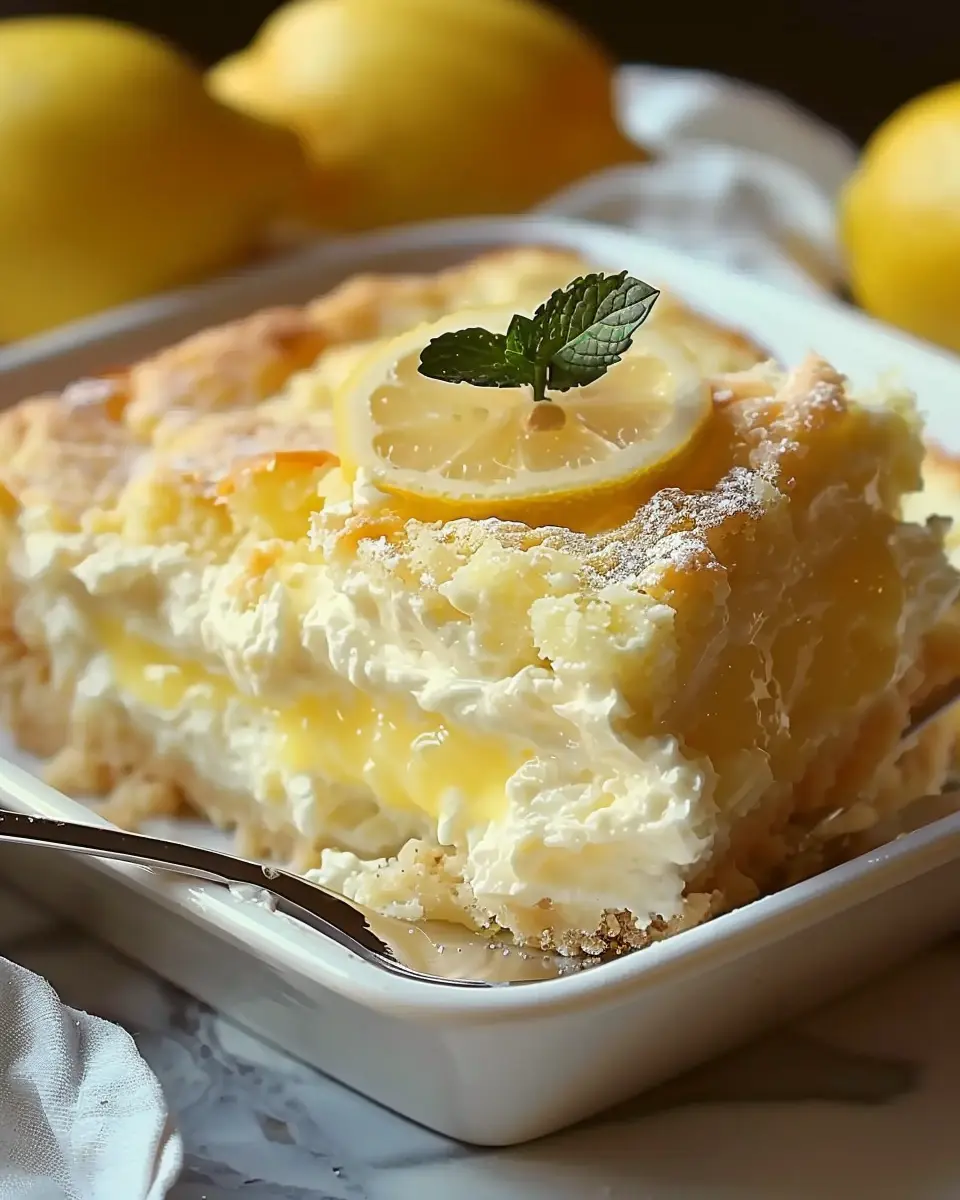 Place your baking dish in the preheated oven and bake for about 40-45 minutes. Keep an eye on it; you want a nice golden top, but every oven is a little different. Once it’s done, let the cake cool in the dish for at least 15-20 minutes before serving. Serve warm, and if you’re feeling fancy, top it off with a dollop of whipped cream and a slice of fresh lemon.