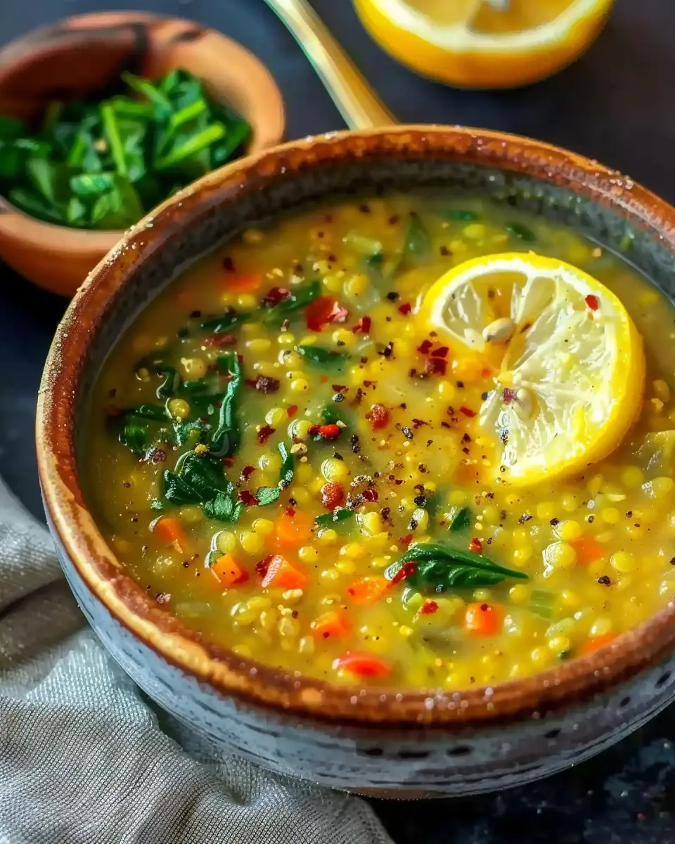 Lemon Lentil Soup with Spinach