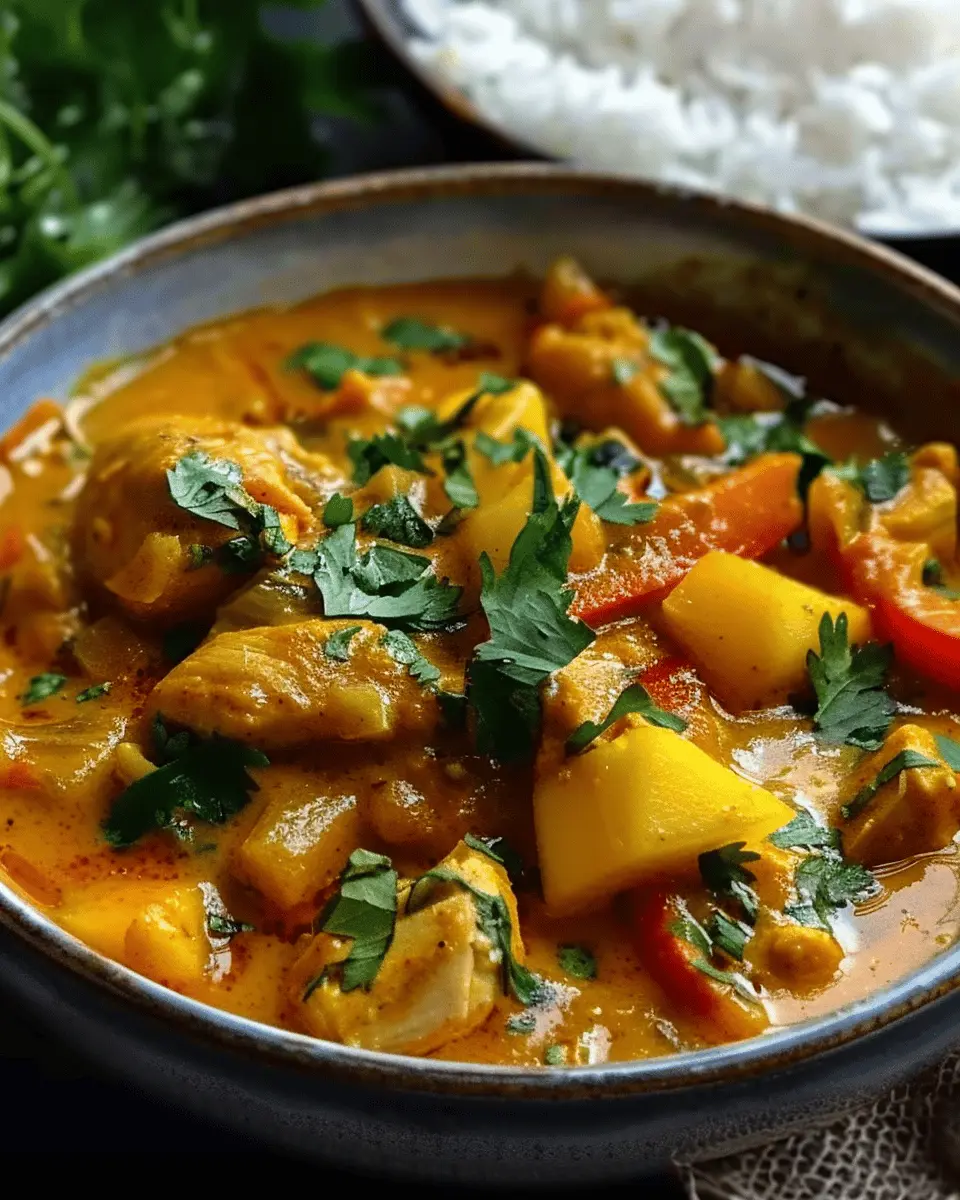 When you prepare this dish, you can expect an explosion of flavors that dance on your palate. The combination of fresh mango, creamy coconut milk, and spices like turmeric, cumin, and coriander creates a dish that’s both comforting and exotic. Imagine serving this vibrant curry over fluffy rice or with warm naan—it’s a meal that invites conversation and brings people together.