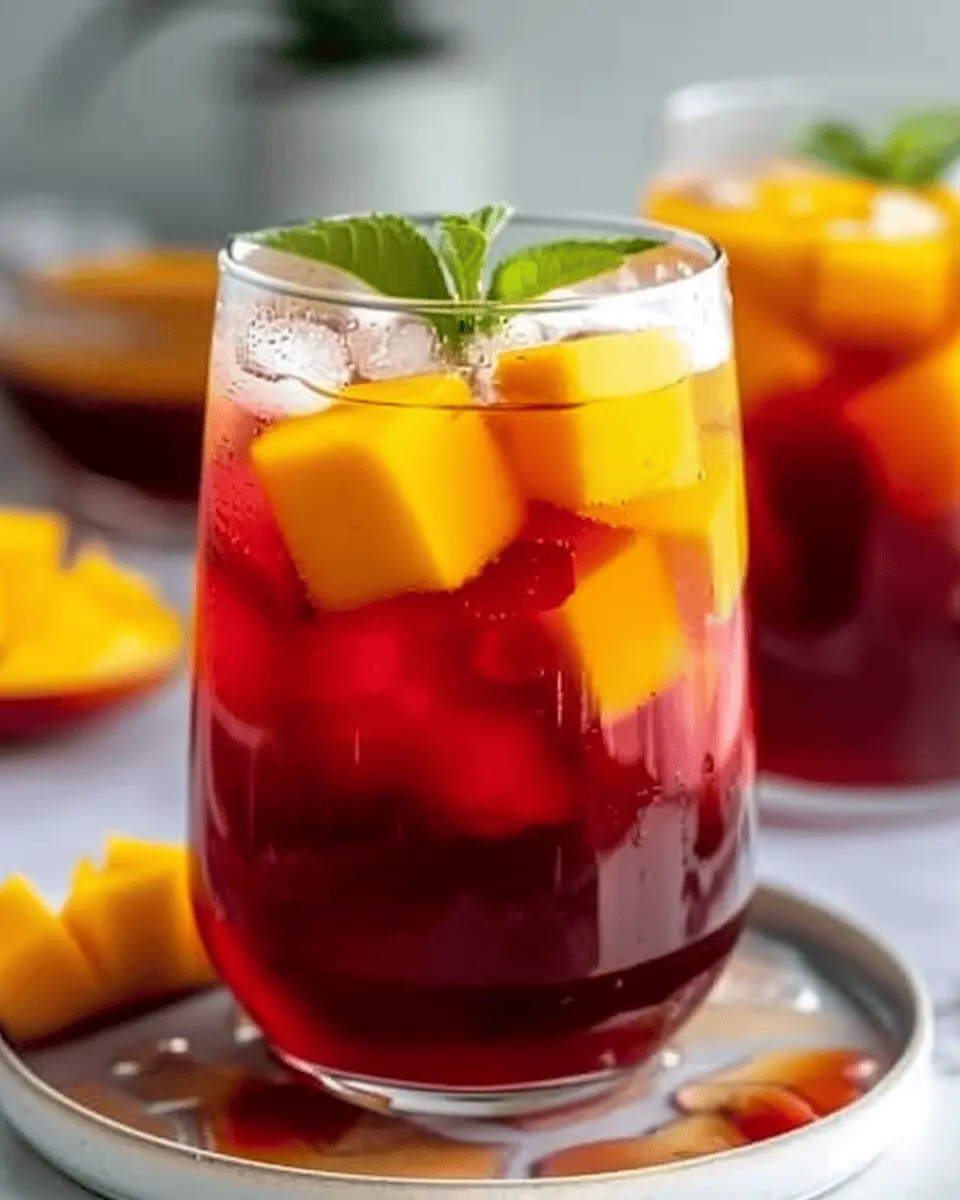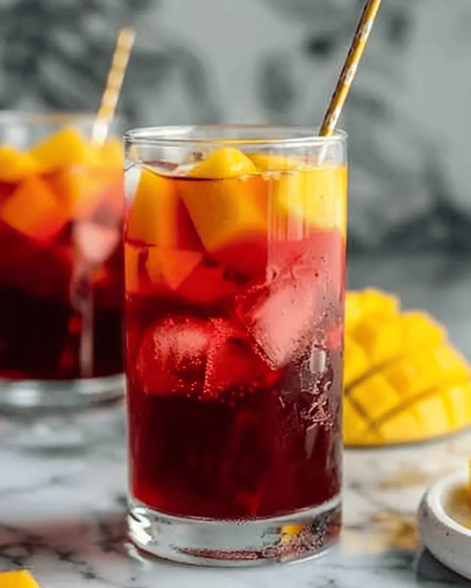 Enjoy a refreshing and easy homemade Mango Hibiscus Iced Tea that combines sweet mango and tart hibiscus flavors.