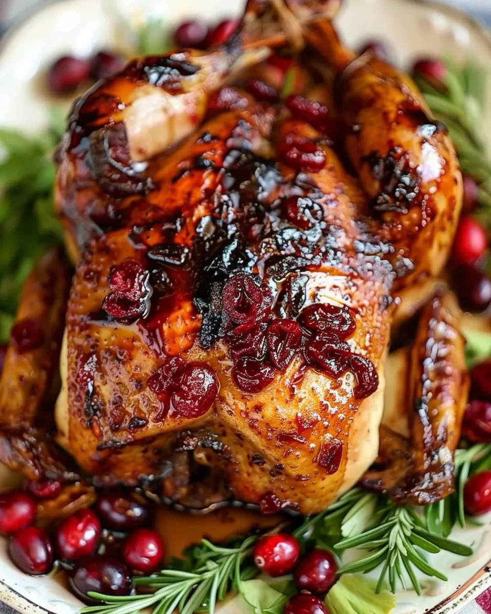 A delicious and easy recipe for Maple Cranberry Roast Chicken that combines sweet and savory flavors.