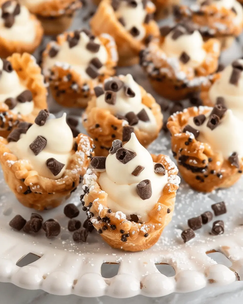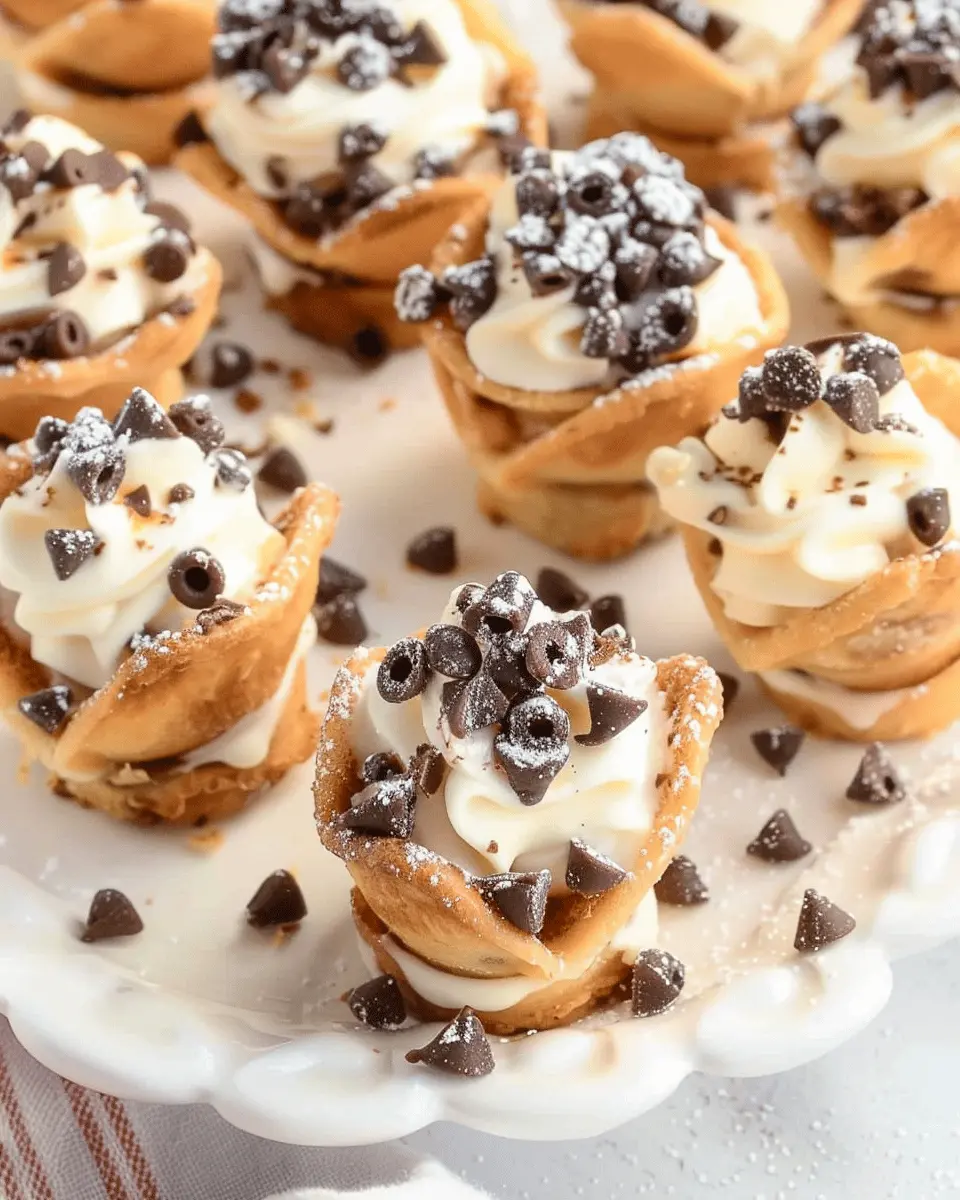 These Mini Cannoli Cups are the perfect bite-sized treat for dessert lovers, featuring a creamy filling and crunchy cups.
