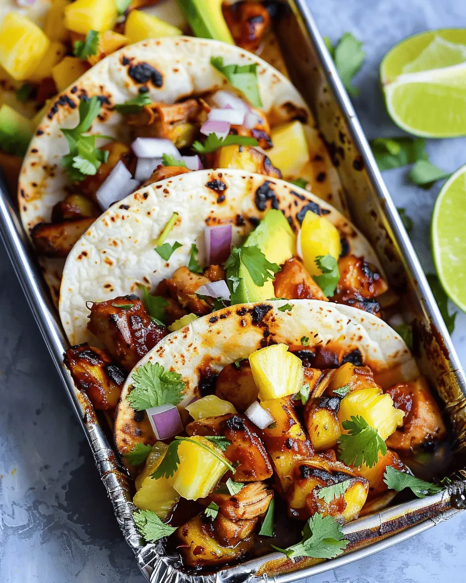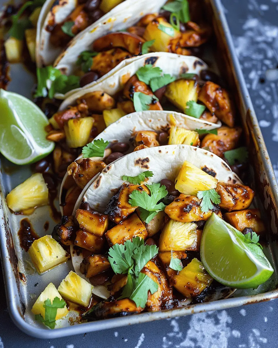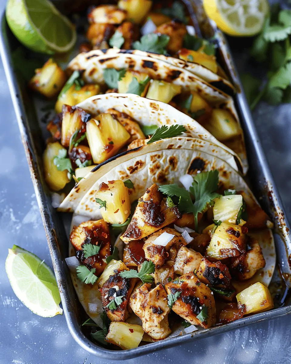 Enjoy a delicious twist on traditional tacos with this easy recipe that combines chicken and pineapple in one pan for a juicy meal.