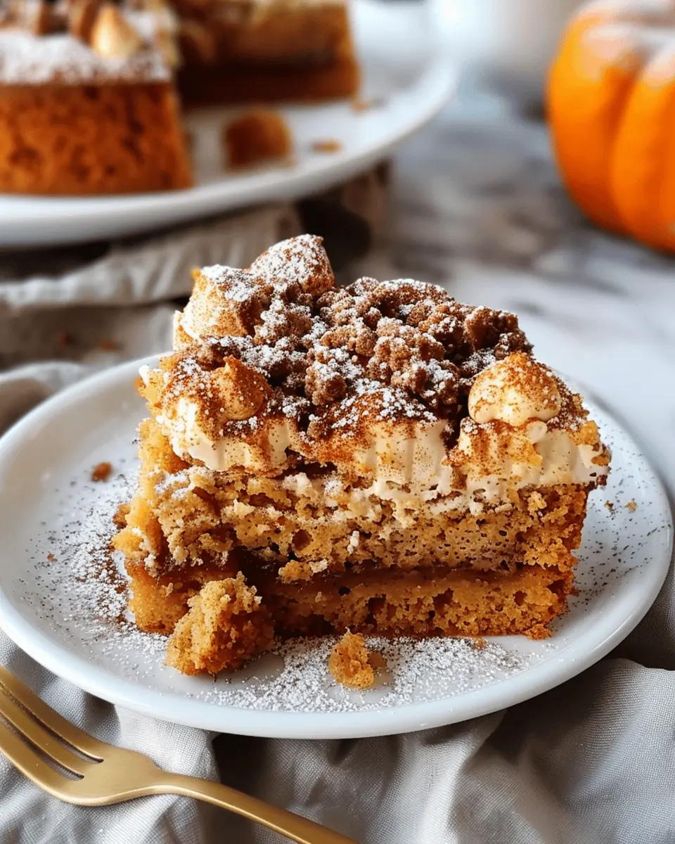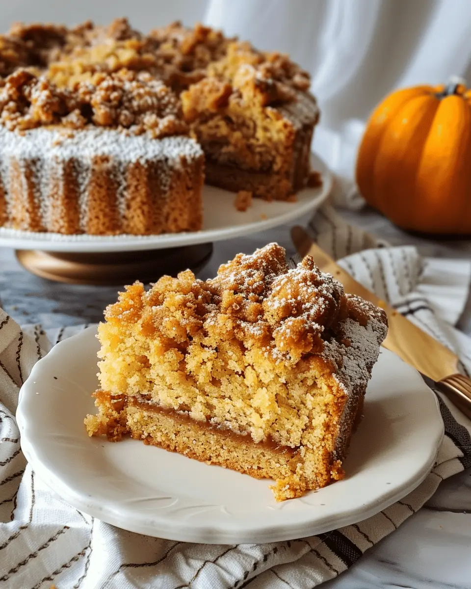 A warm and spiced pumpkin coffee cake perfect for cozy fall mornings.