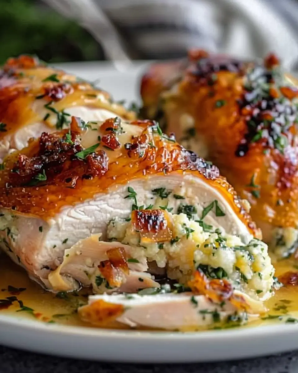 • For added flavor, marinate the chicken in herbs before stuffing.