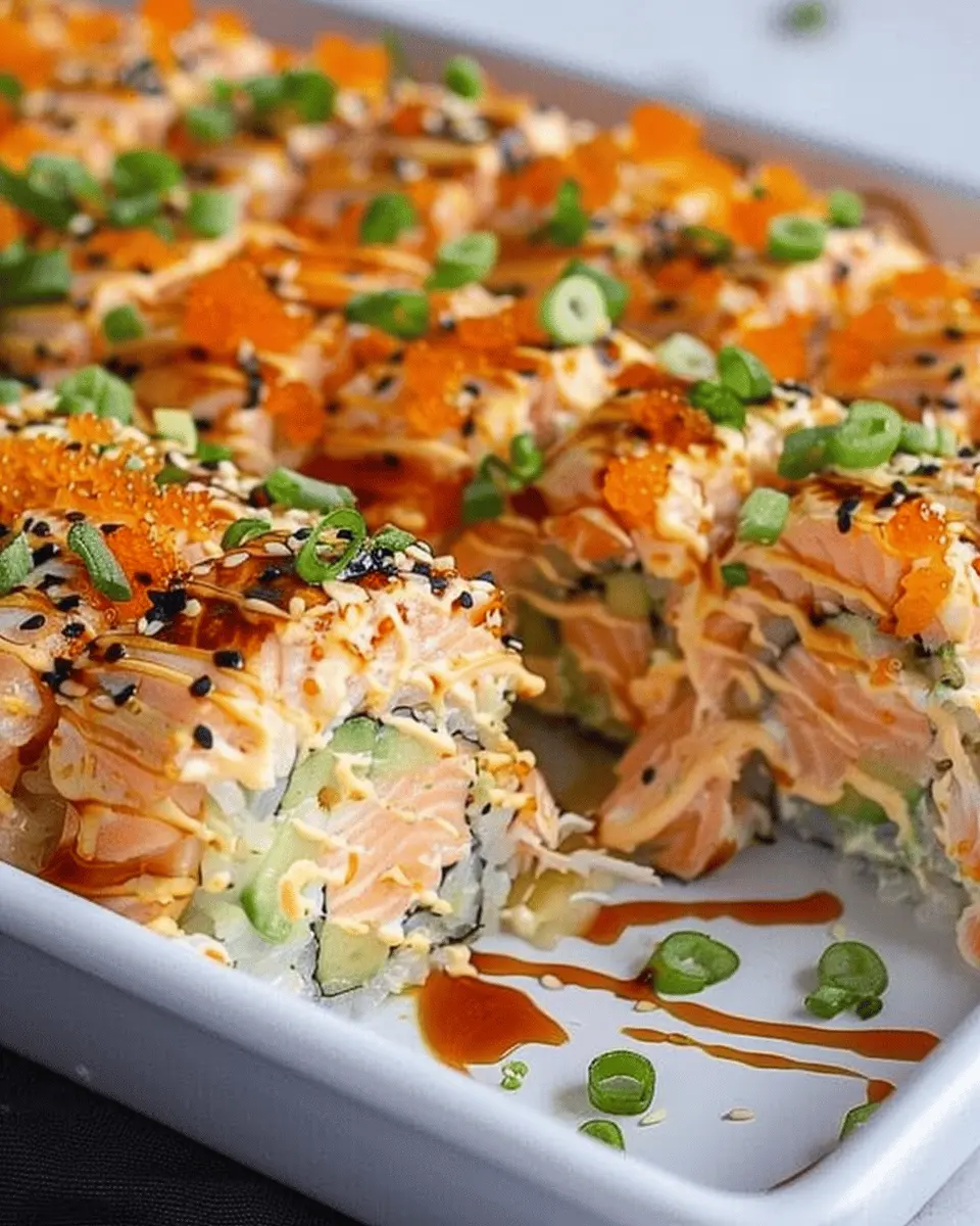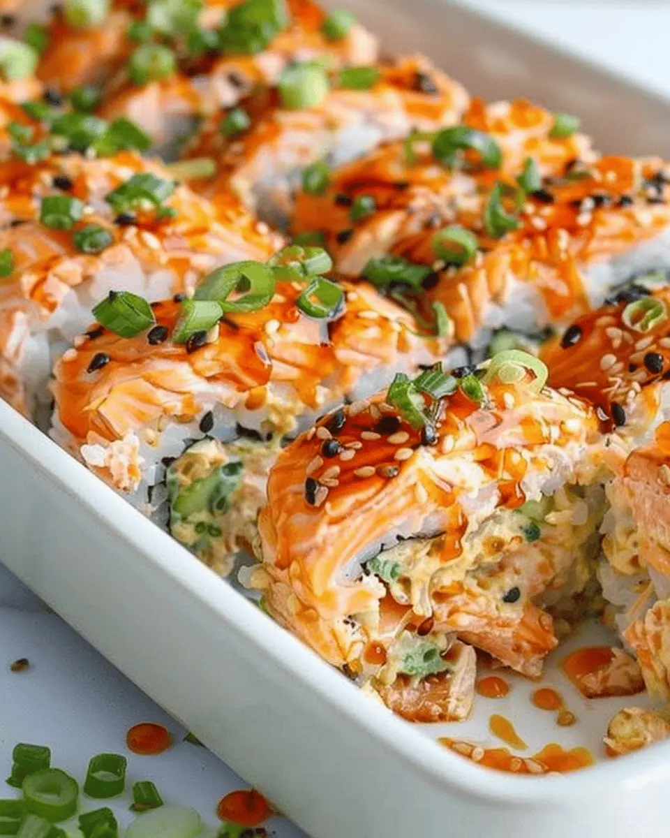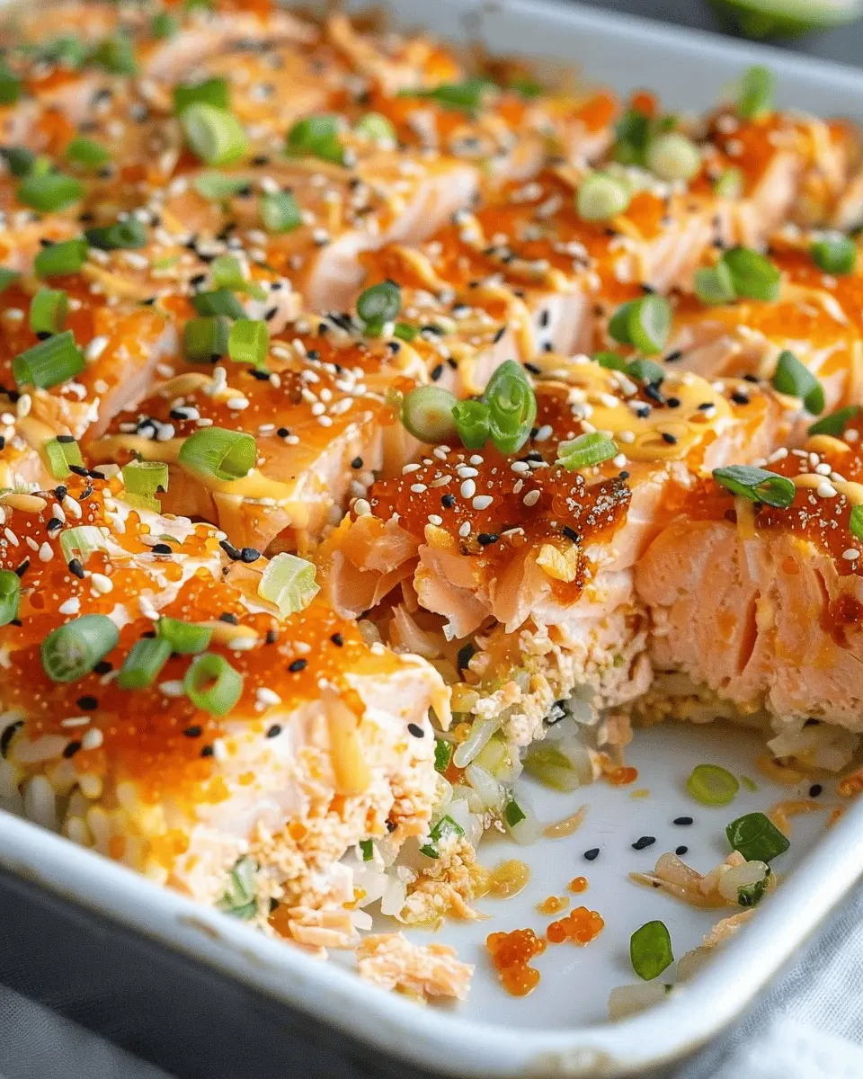 And there you have it—your beautifully assembled salmon sushi bake is ready to impress. Serve it warm, garnished with additional green onions and a drizzle of soy sauce. Looking for ways to customize it? Consider experimenting with different toppings or mix-ins to make your dish uniquely yours.