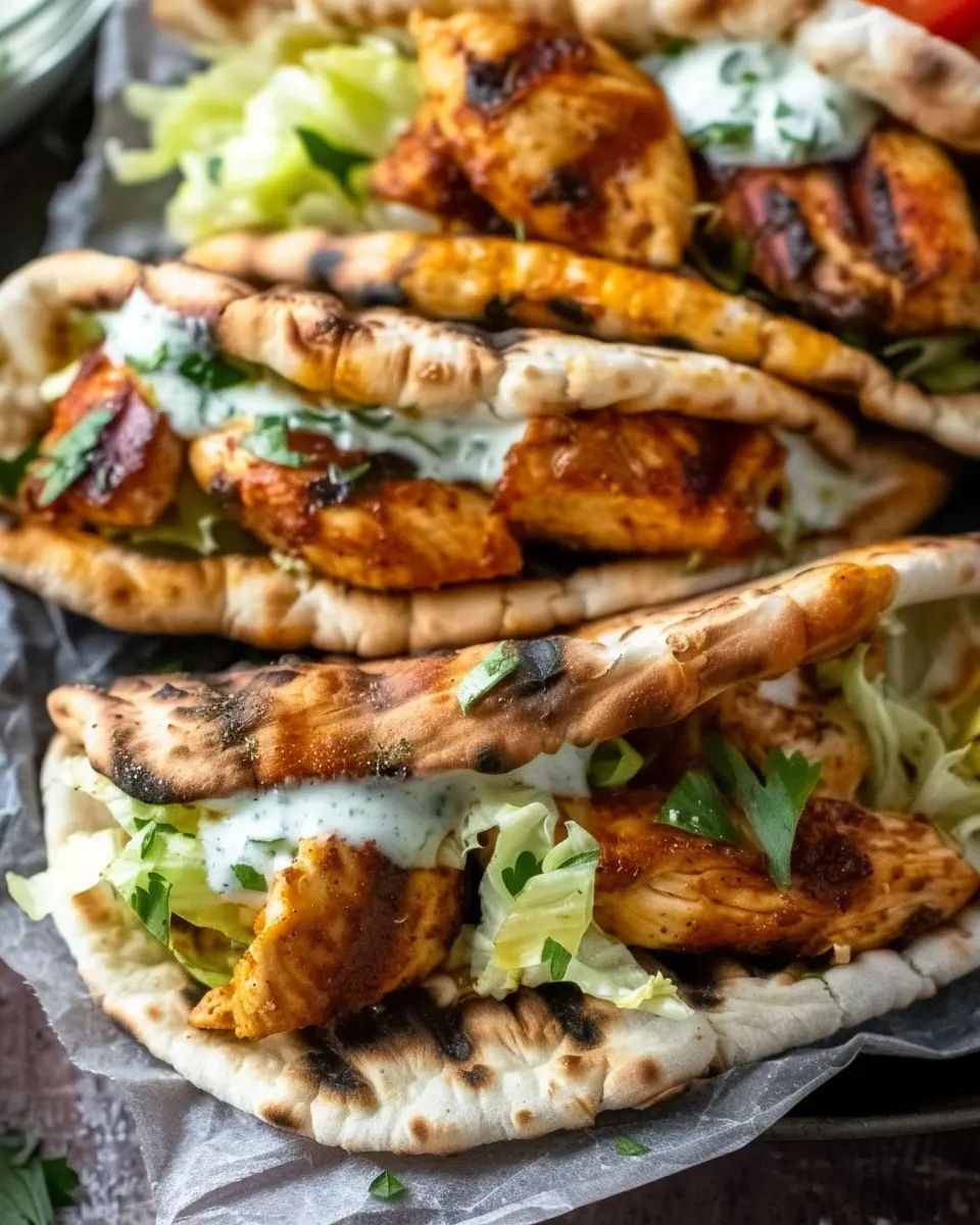 - Assemble the pitas by adding chicken, lettuce, tomatoes, cucumbers, and tzatziki sauce.