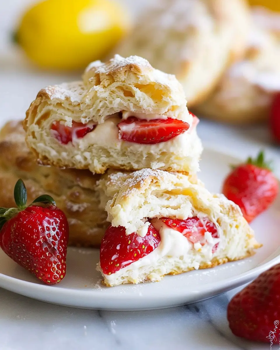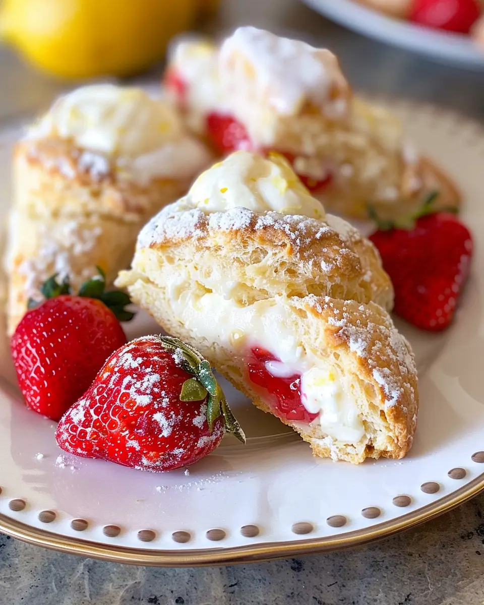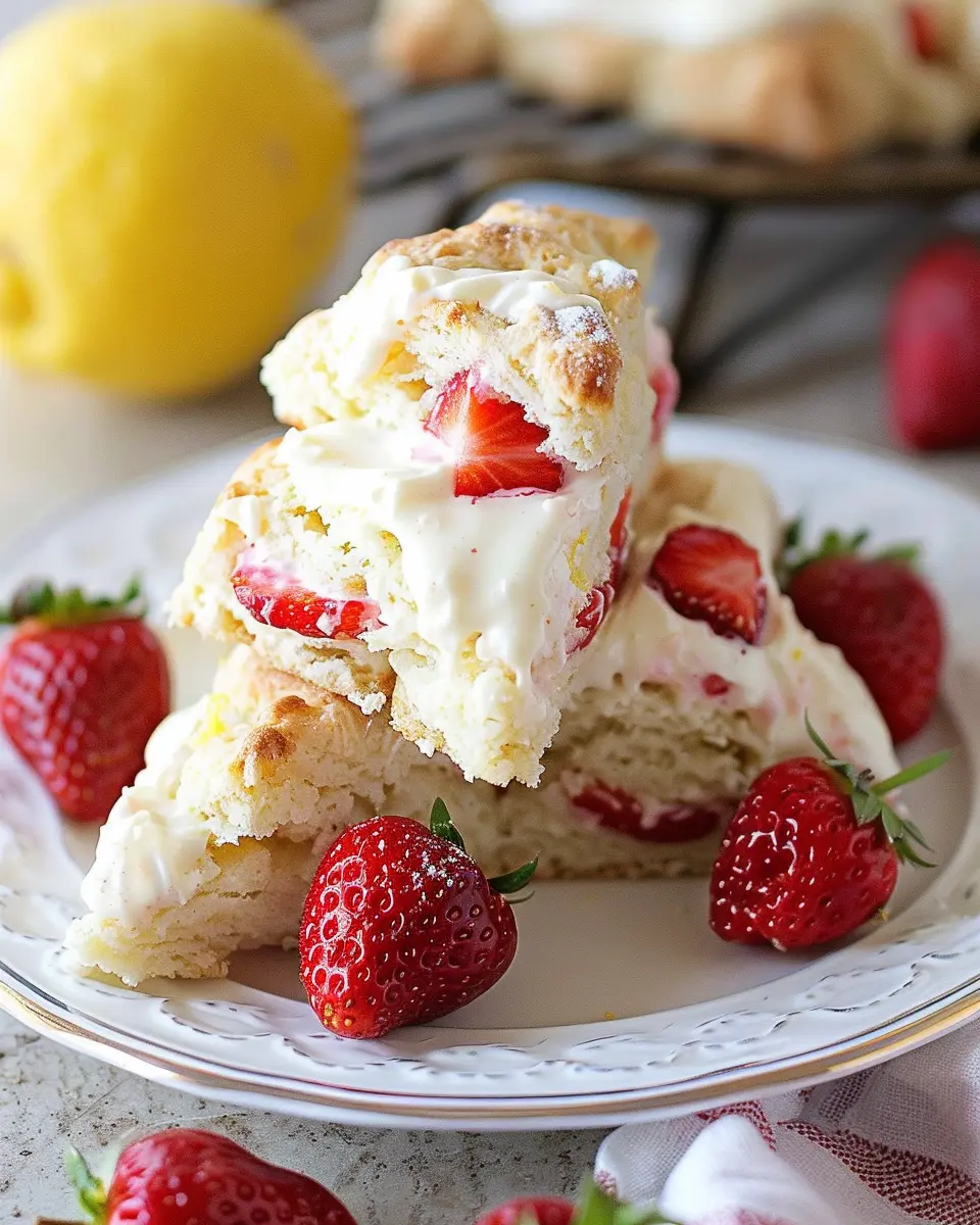 Delightful scones filled with fresh strawberries and zesty lemon cream make for a perfect breakfast treat.