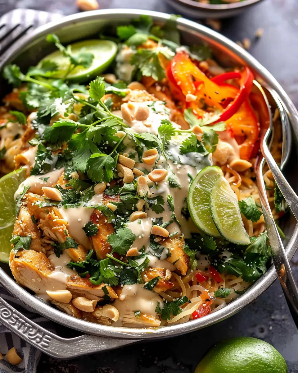 PrintThai Peanut Chicken Noodle Bowls: Easy Weeknight Comfort Food