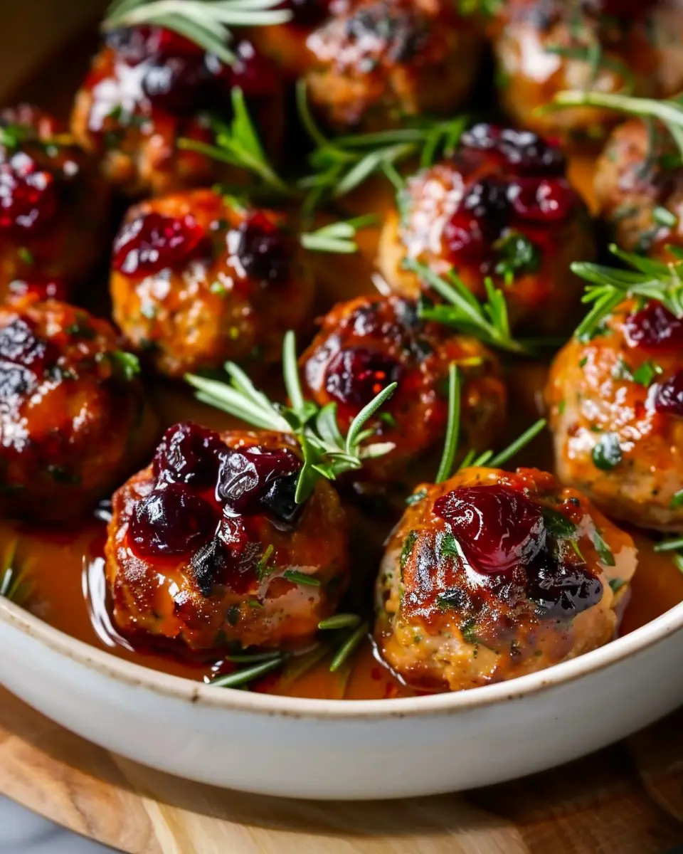 Delicious and comforting turkey meatballs infused with cranberry flavor—perfect for your Thanksgiving feast.