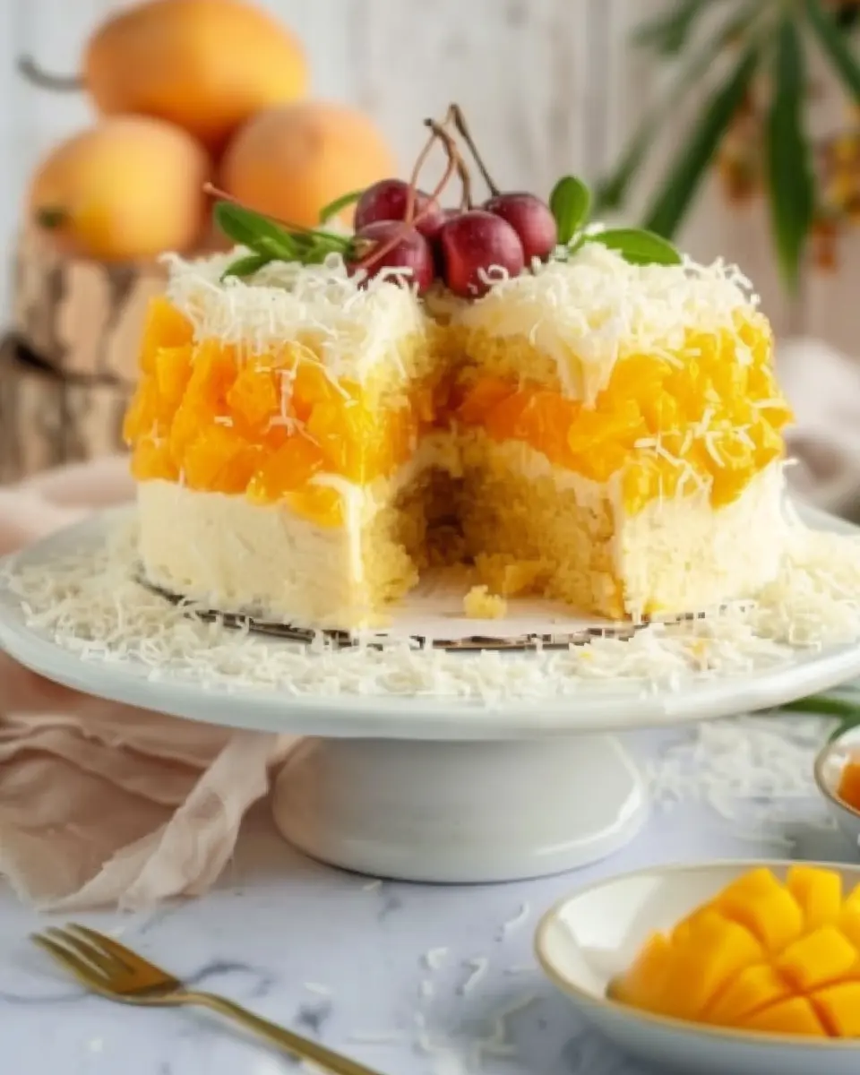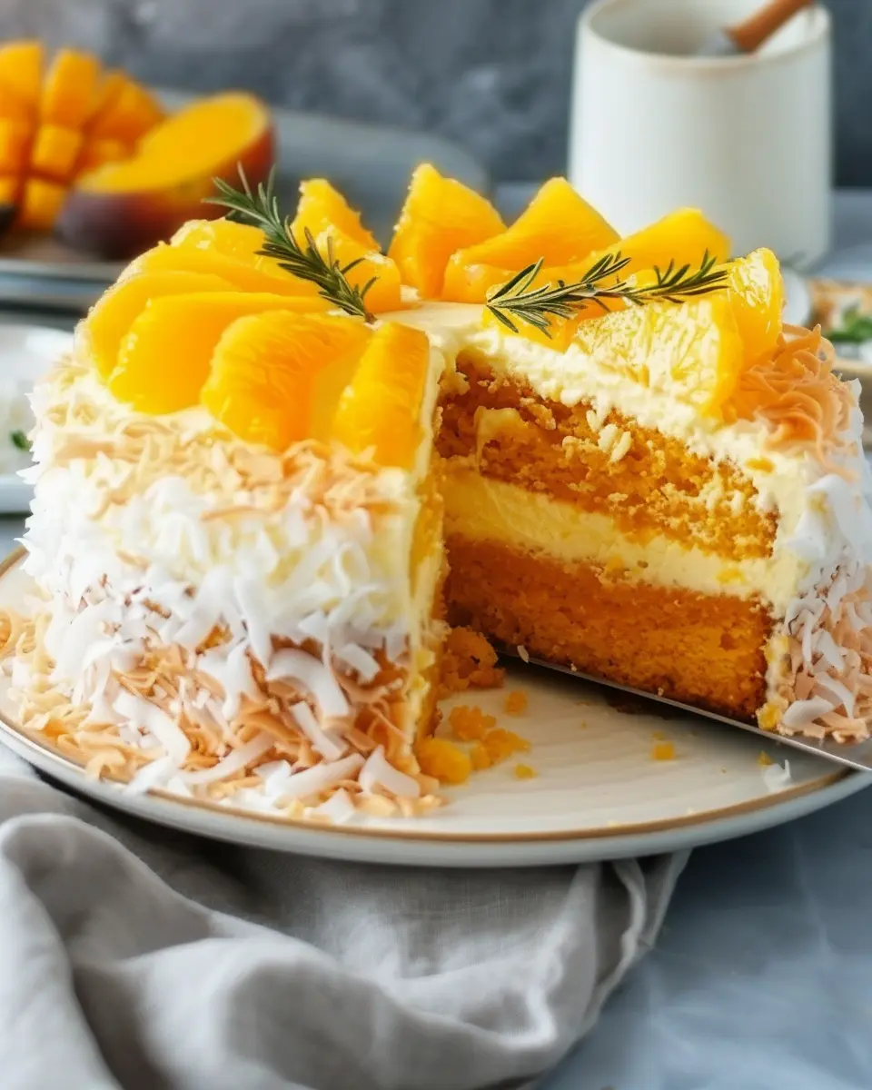 PrintVegan Mango Coconut Cake: The Best Tropical Dessert Delight
